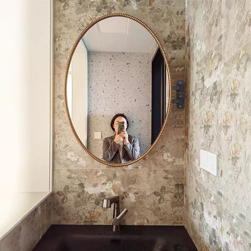 椭圆珠点法式 壁挂360度旋转伸缩风水智能镜触控带灯补光化妆镜子