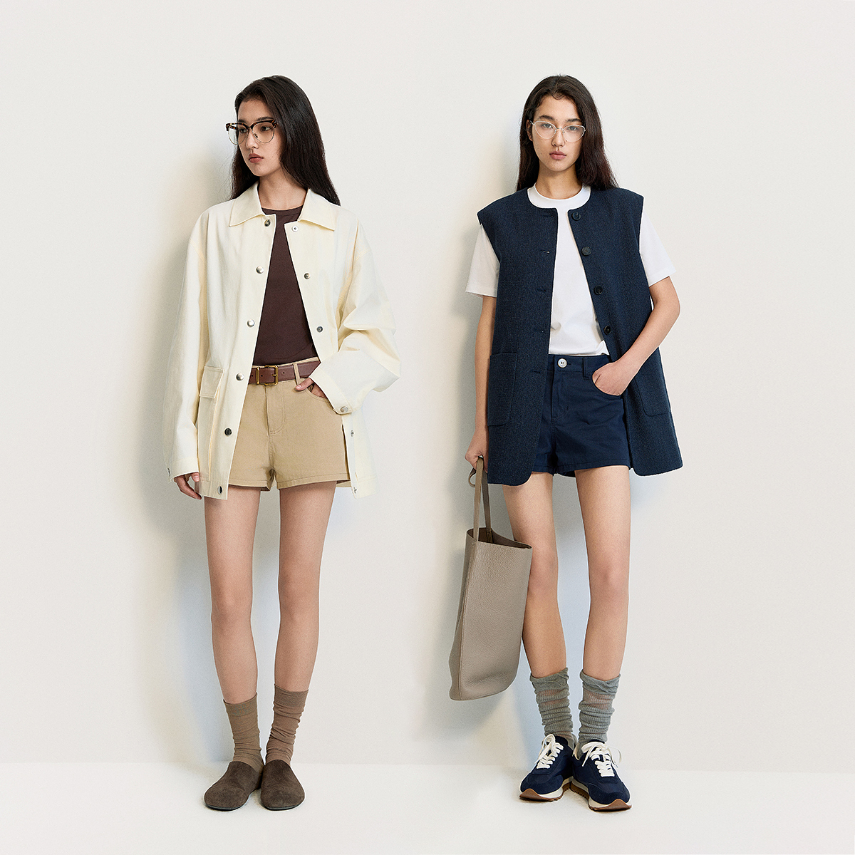 子宽松显瘦2025早秋新品 女裤 100%棉直筒休闲短裤 OCHIRLY欧时力