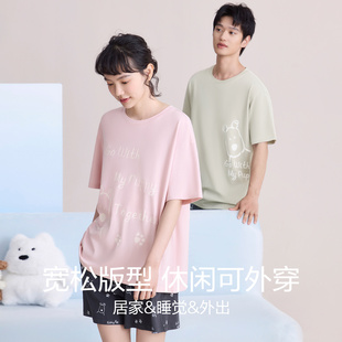 家居服套装 凉感可爱套头外穿休闲夏天款 短裤 红豆情侣睡衣柔棉短袖