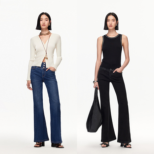 小个子拖地直筒弹力怀旧喇叭裤 高腰马蹄浅色长裤 牛仔女美式 微喇裤
