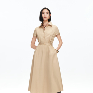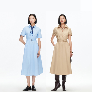 翻领收腰浅色衬衫 莱赛尔混纺工装 裙过膝连衣裙 女装 LILY2025秋新款