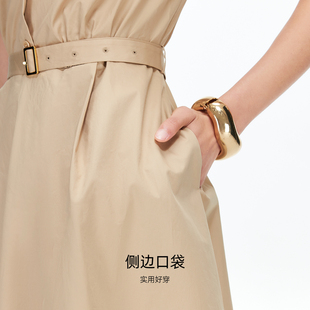 COCOBELLA气质通勤V领无袖 连衣裙长裙女玉石扣抽绳背心裙FR7008