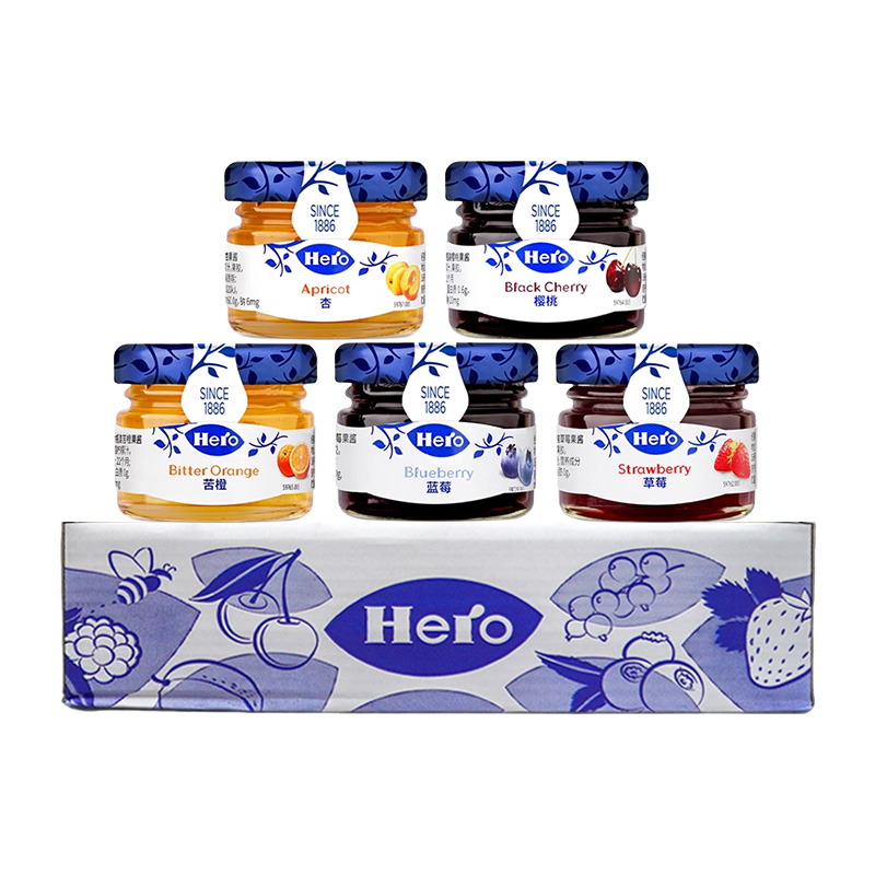 整箱 72瓶 Hero英雄果酱草莓苦橙樱桃蓝莓果酱杏果酱小包装 28.3g
