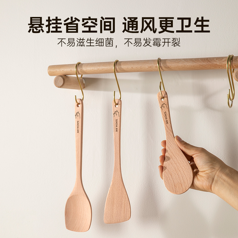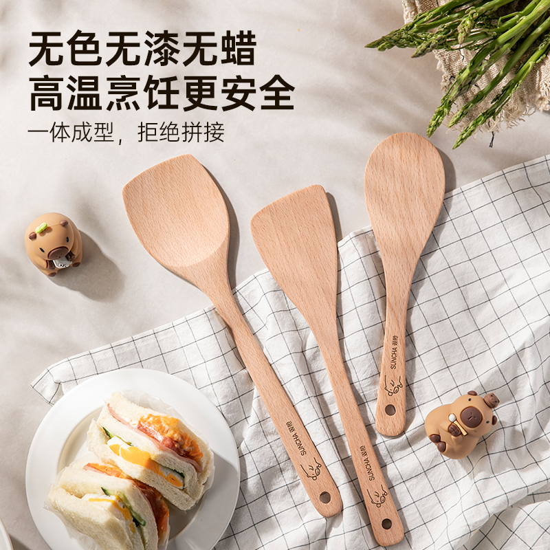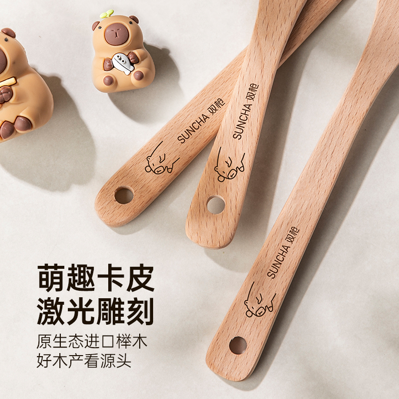 双枪卡皮迷你木锅铲子不粘锅专用耐高温炒菜木铲子小锅铲实木锅铲