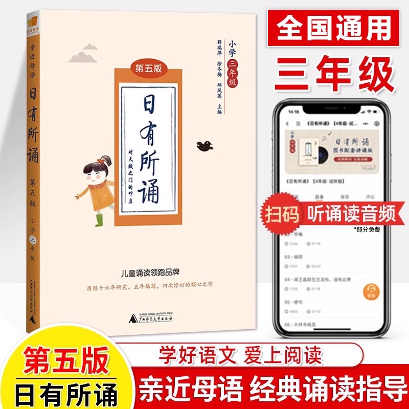 邱凤莲 徐冬梅 国学经典 诵读材小学生课外阅读书籍 社 日有所诵第五版 广西师范大学出版 一年级二三四五六上下天天练亲近母语薛瑞萍
