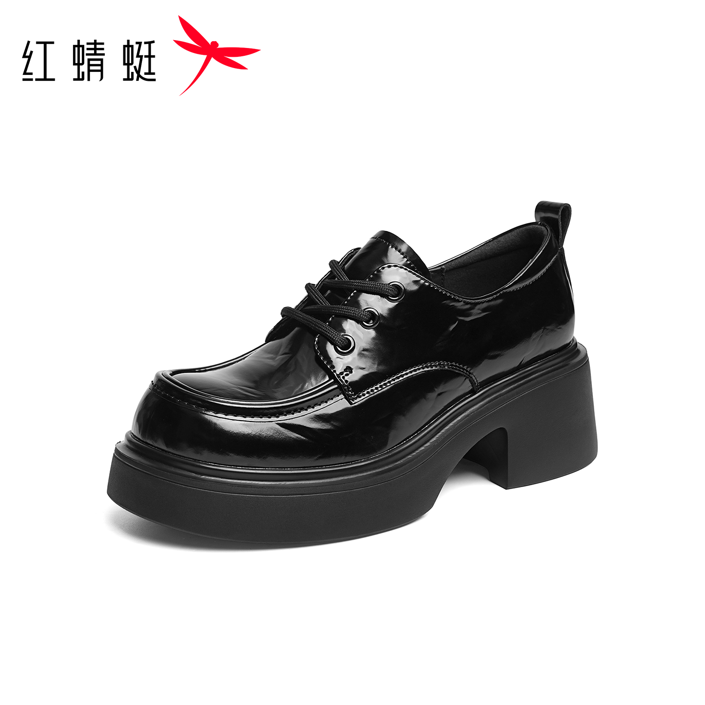 英伦小皮鞋 红蜻蜓厚底乐福鞋 黑色小个子增高单鞋 女鞋 女2025秋新款