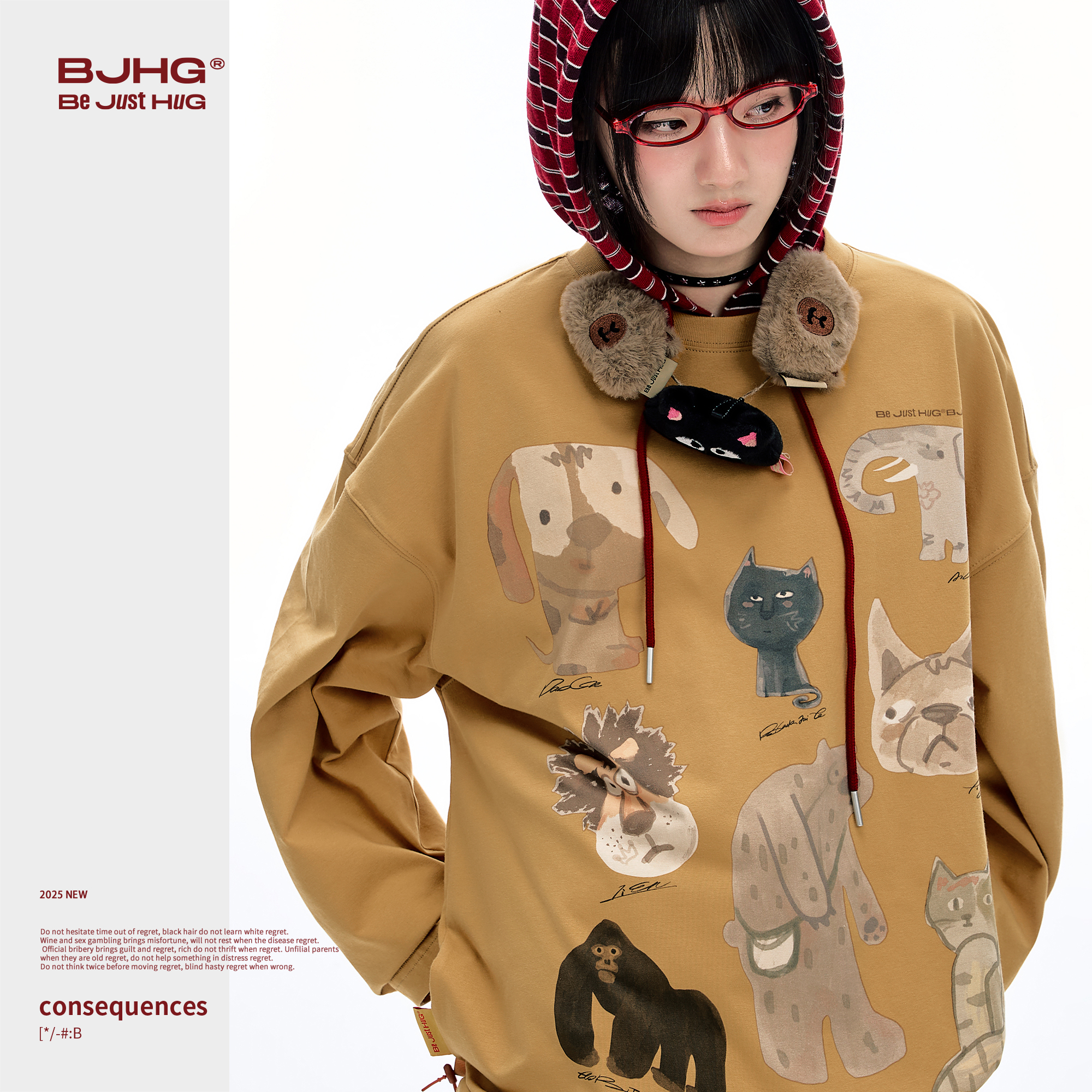 2025新款 t恤男秋季 潮牌动物印花速干上衣女 长袖 BJHG不计后果美式