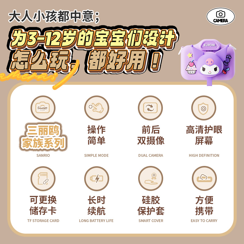 库洛米儿童照相机数码 12岁专用 玩具暑假儿童礼物生日送给孩子3