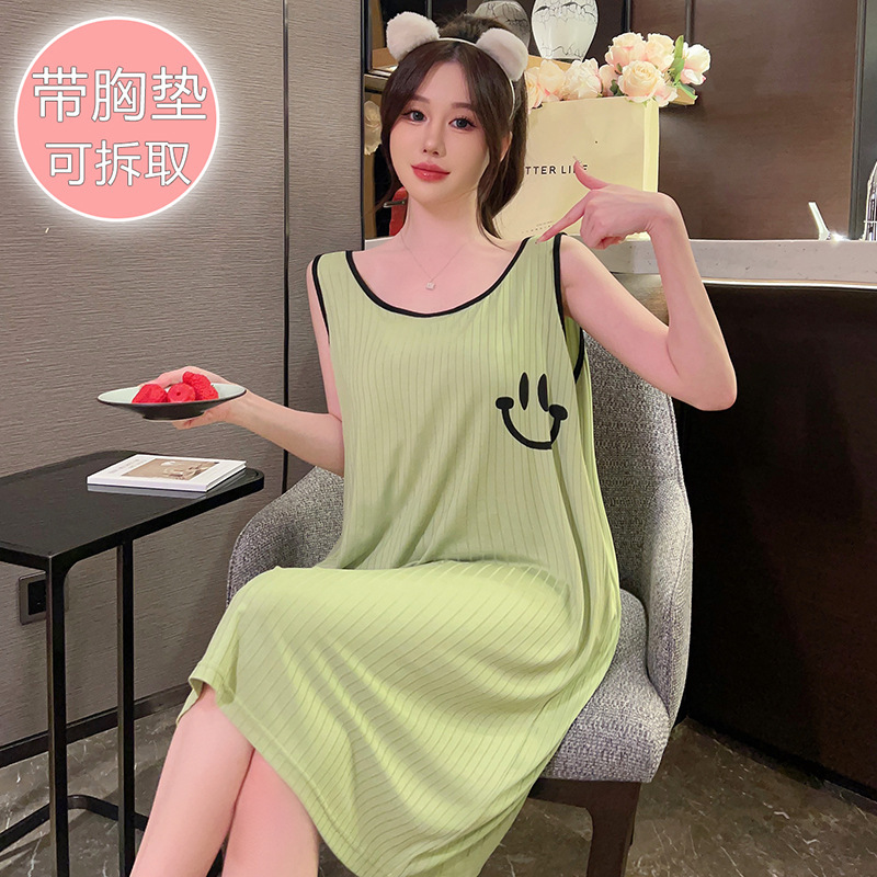 可外穿家居服套装 纯棉薄款 文胸居家 短袖 浪莎带胸垫一体睡衣女夏季