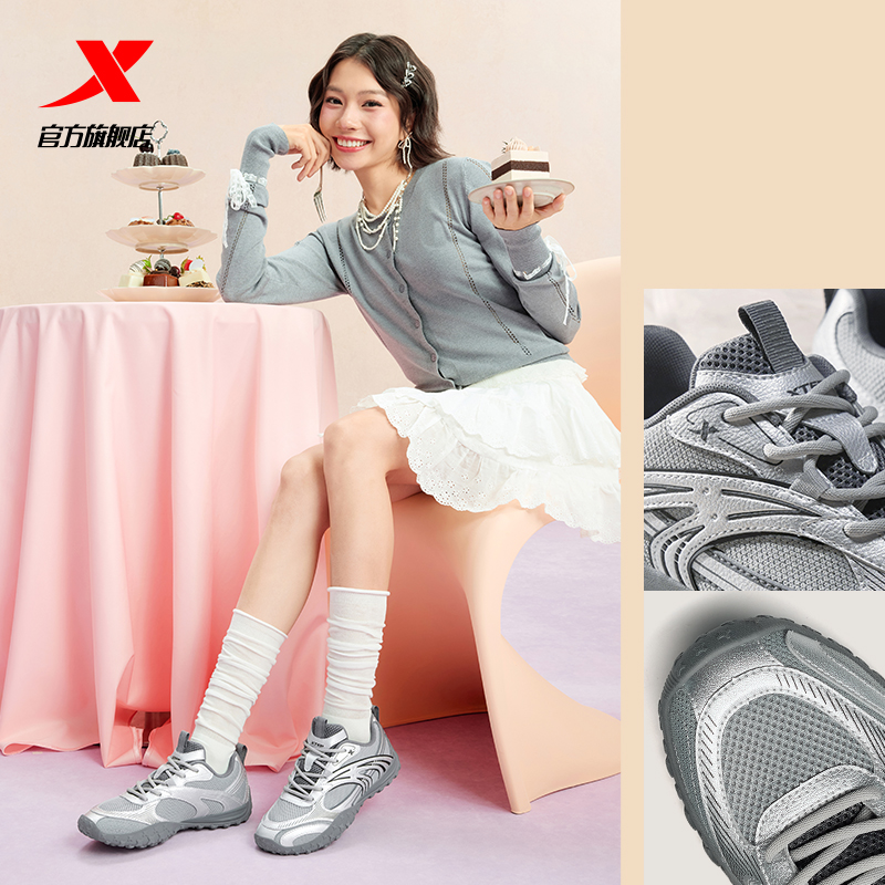 女鞋 轻便银色运动鞋 秋季 德训鞋 子 百搭复古芭蕾鞋 特步小芭蕾休闲鞋