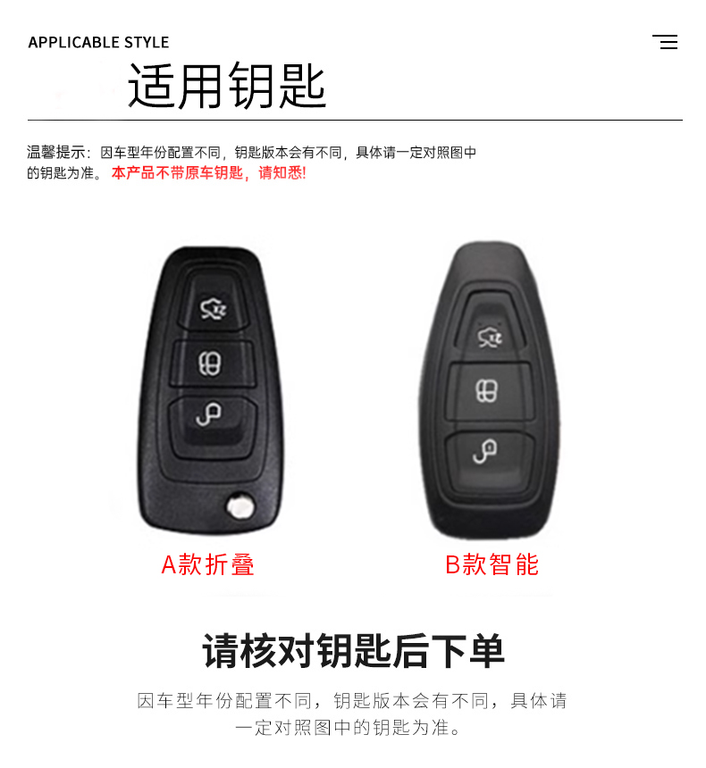 适用福特翼虎钥匙套翼博经典 蒙迪欧致胜汽车壳扣 福克斯嘉年华老款
