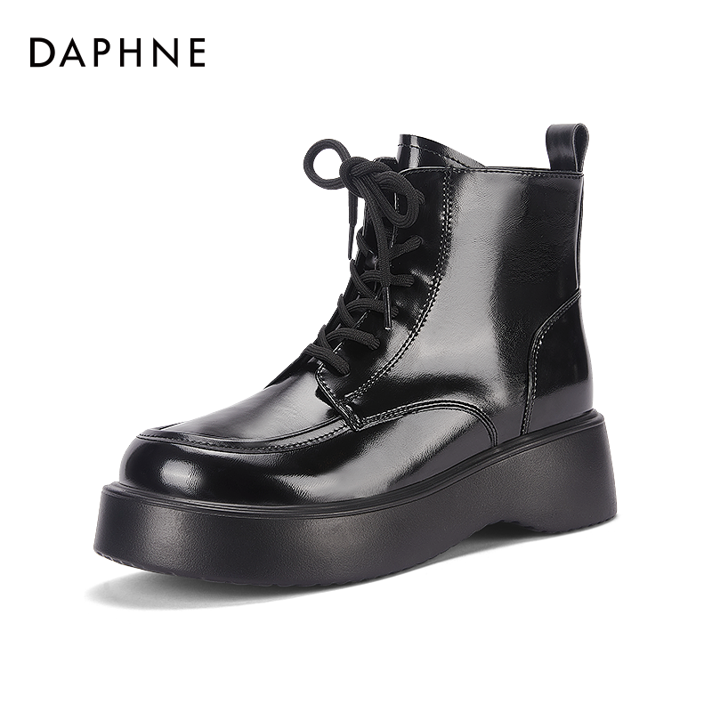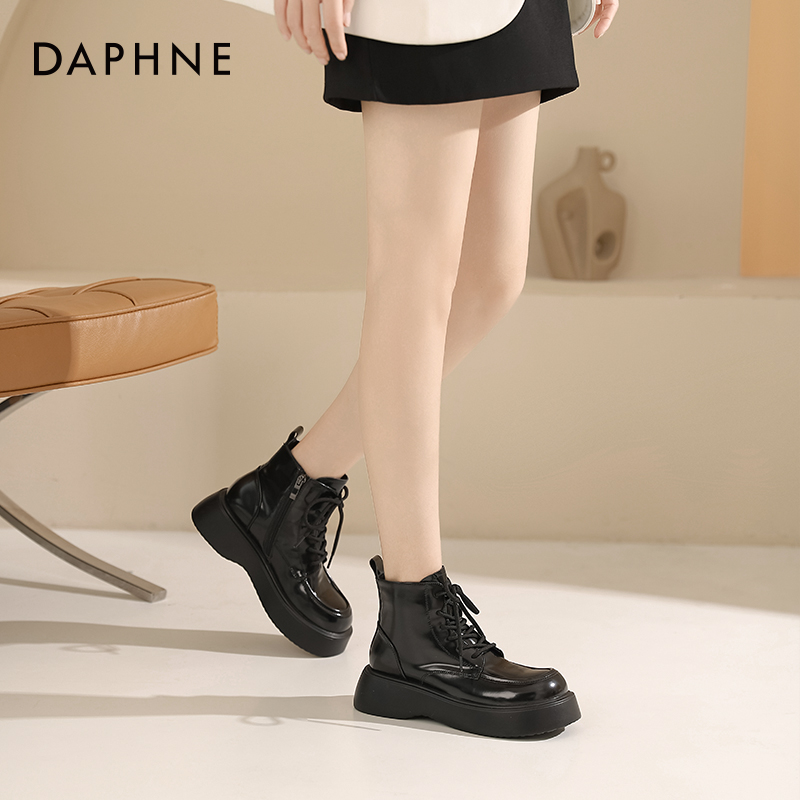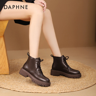 达芙妮黑色马丁靴女款 皮靴厚底炸街英伦风增高靴子女短靴 2025秋季