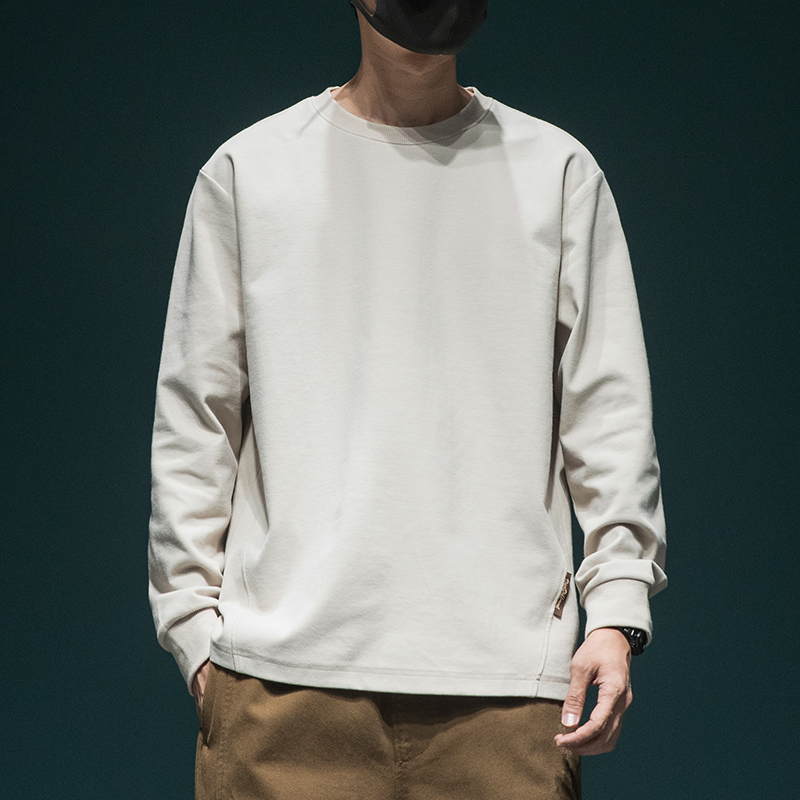 新款 设计感体恤圆领套头打底衫 长袖 潮牌日系宽松大码 T恤男士 秋季