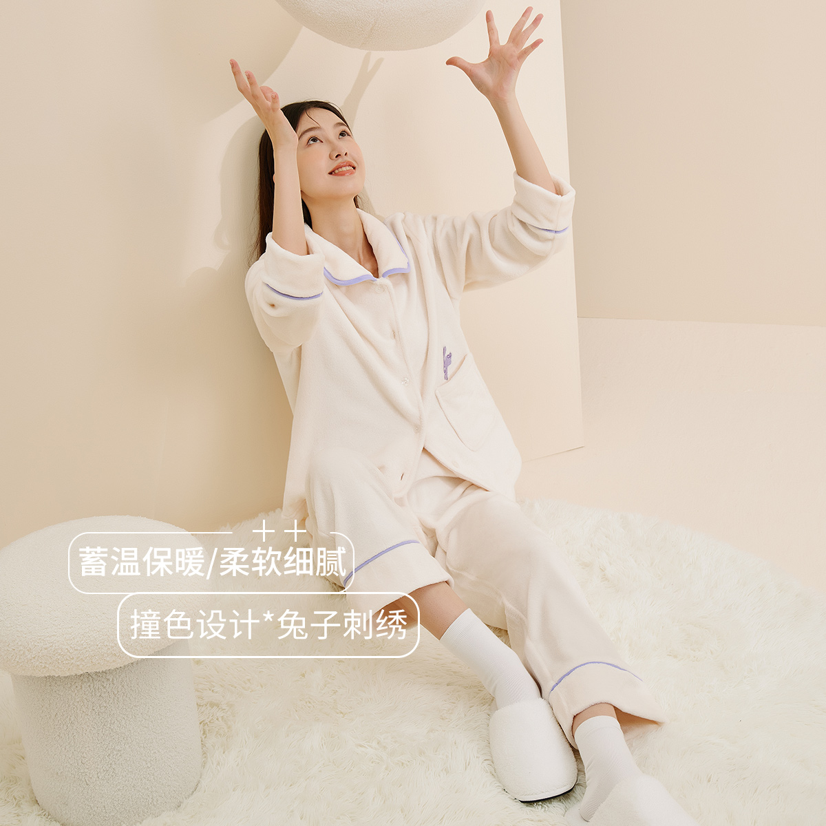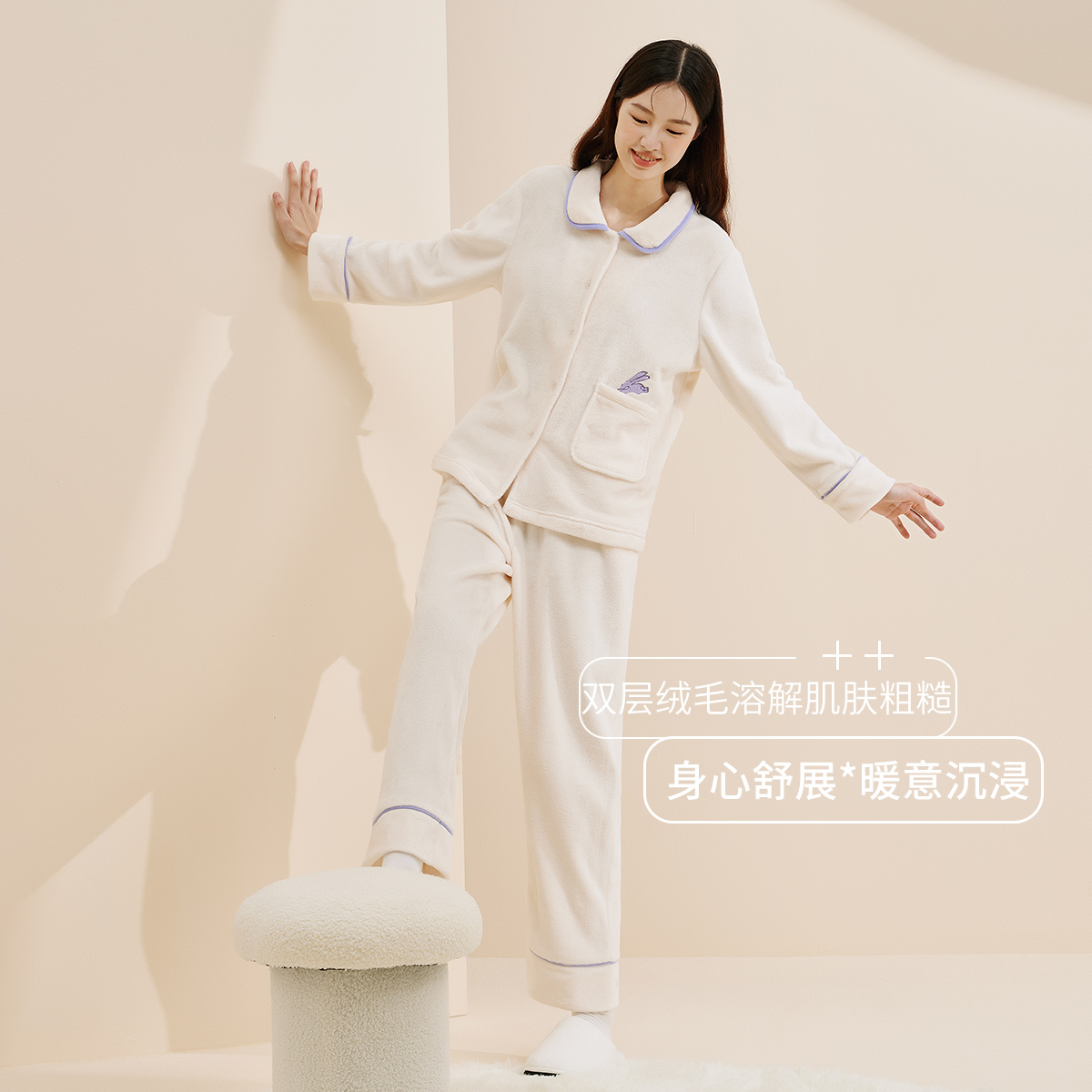 家居服春秋新款 加厚法兰绒加绒套装 珊瑚绒睡衣女秋冬季 2025年冬款