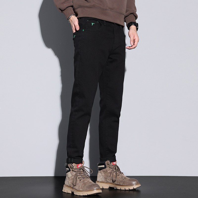 直筒长裤 潮牌修身 2025秋季 新款 子男 黑色秋冬男士 弹力休闲裤 牛仔裤