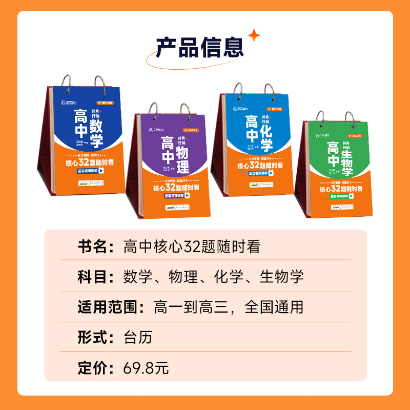 提分台历 王后雄高中数学物理化学生物核心32题随时看分步解题模型记忆高一高二高中通用高考冲刺清北名校状元 王后雄高中台历