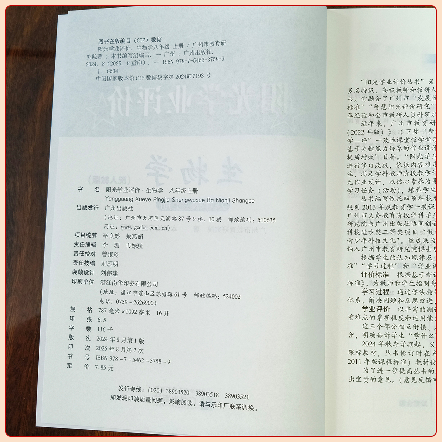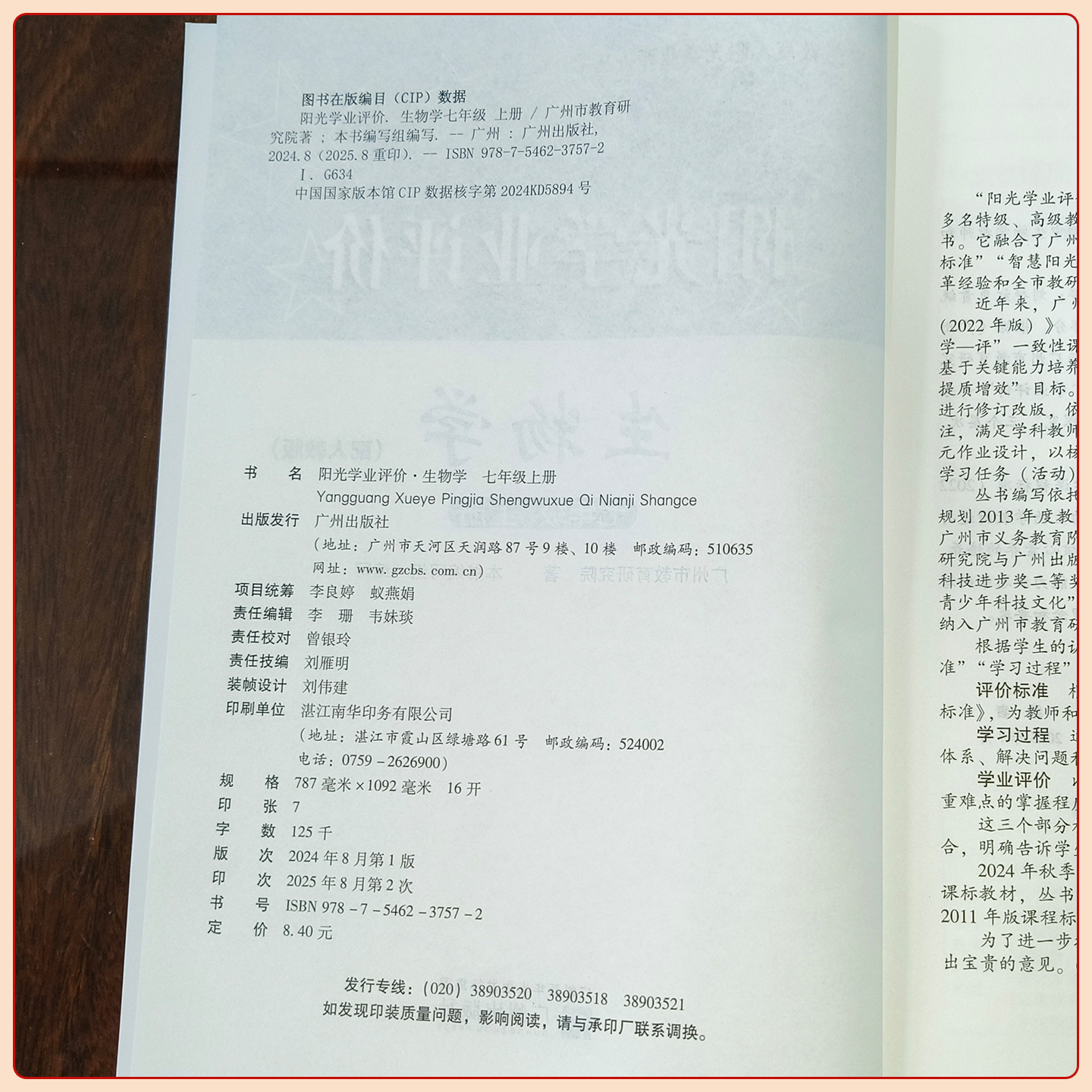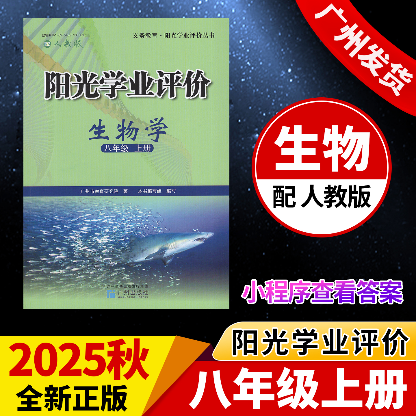 社 2025秋阳光学业评价初中生物七78八年级上册配人教版 广州出版 广州市教育研究院研发 RJ初一二生物同步练习册辅导资料书籍