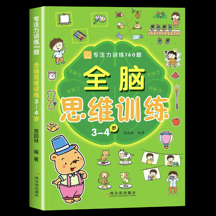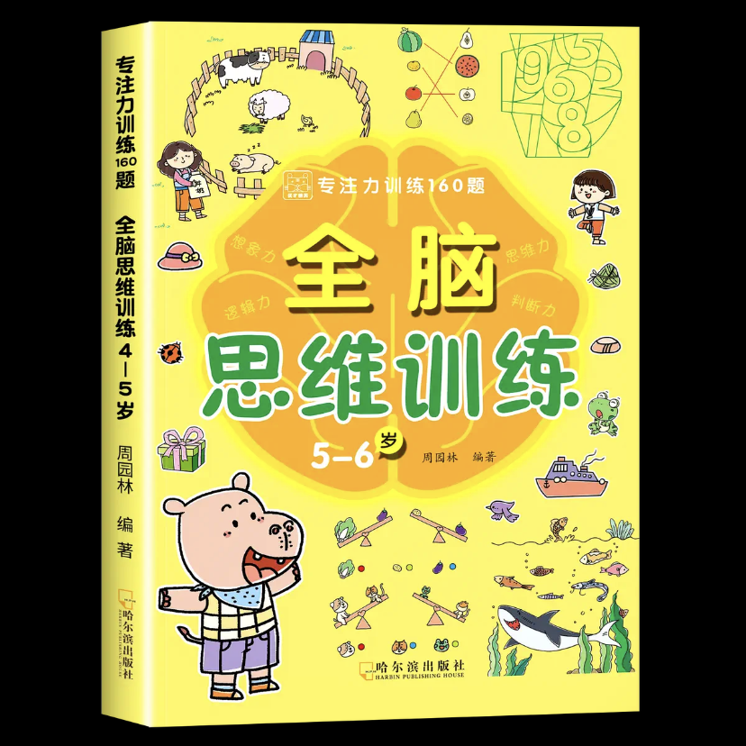 6岁宝宝数学逻辑思维能力提升益智游戏书籍幼儿园小中大班智力潜能开发启蒙认知早教书 儿童全脑思维专注力训练160题全套2
