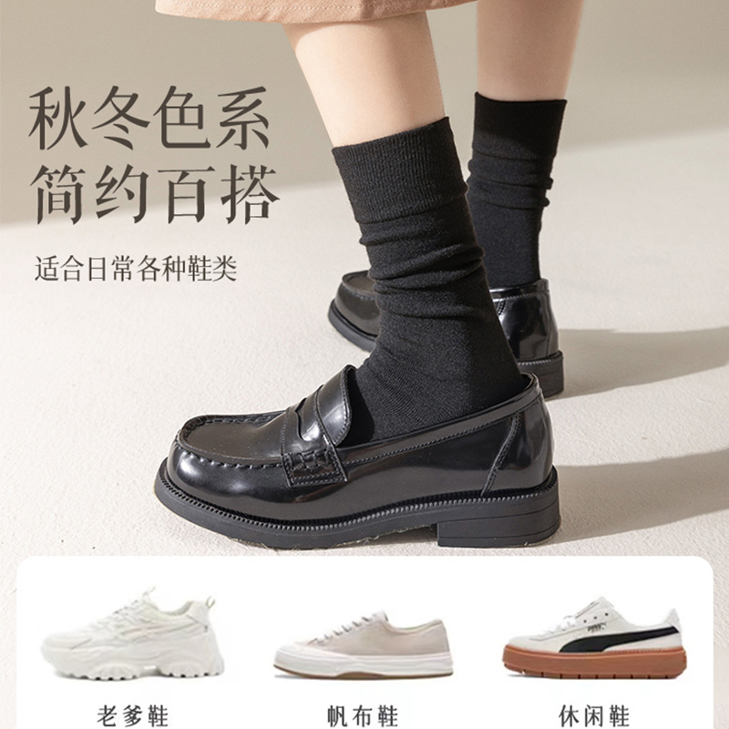 白色袜子女中筒堆堆袜春秋款 长筒袜美拉德 棉袜无骨秋冬搭配小皮鞋