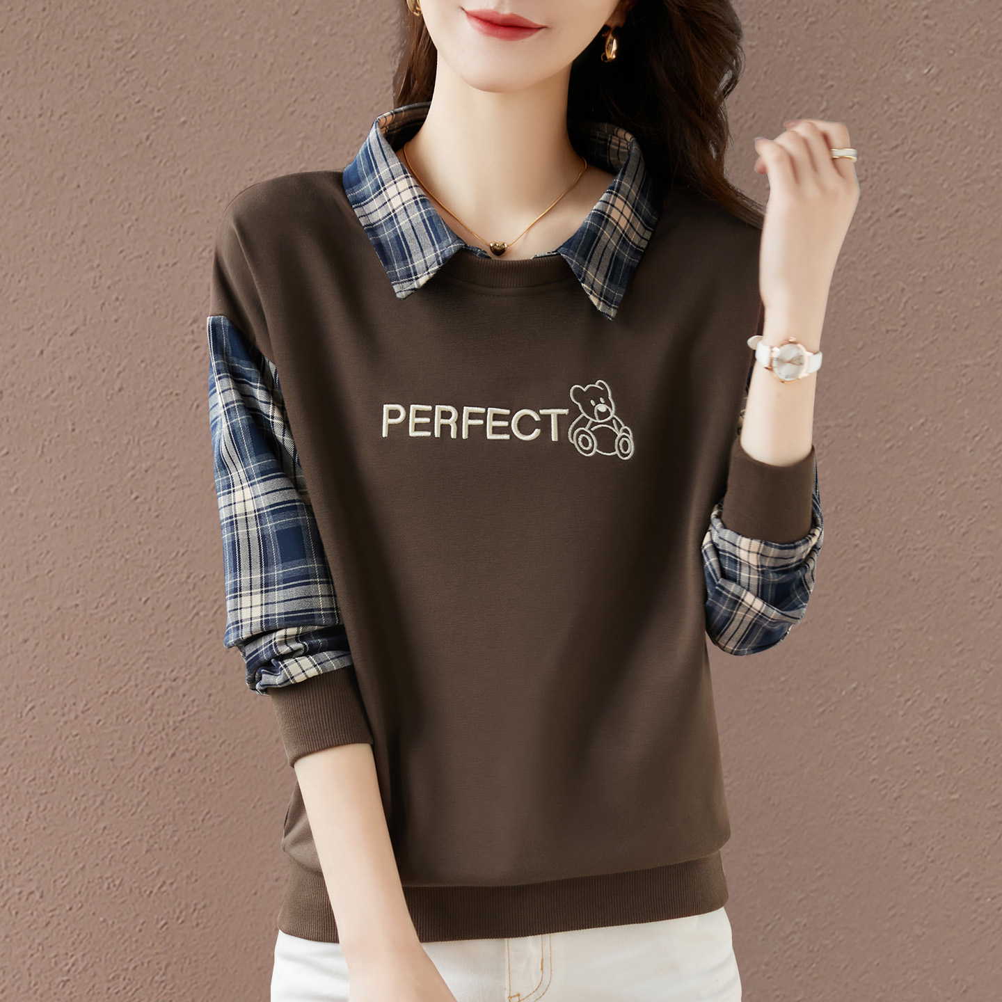 薄款 有领女士卫衣春秋2025年新款 女装 洋气爆款 假两件上衣 早秋时尚