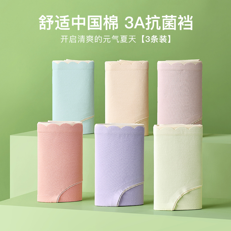 日系中腰无痕透气三角短裤 女款 女士抗菌新款 内裤 头 新疆棉纯棉裤