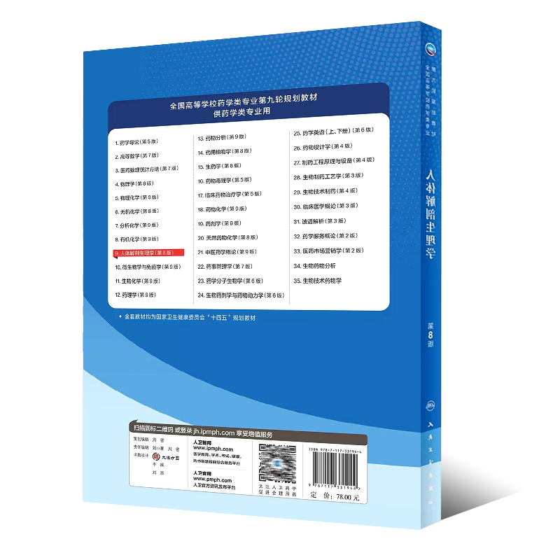 周华 第8版 杨向群主编 人民卫生出版 全国高等学校药学类专业第九轮十四五规划教材教程书籍 正版 社 人体解剖生理学