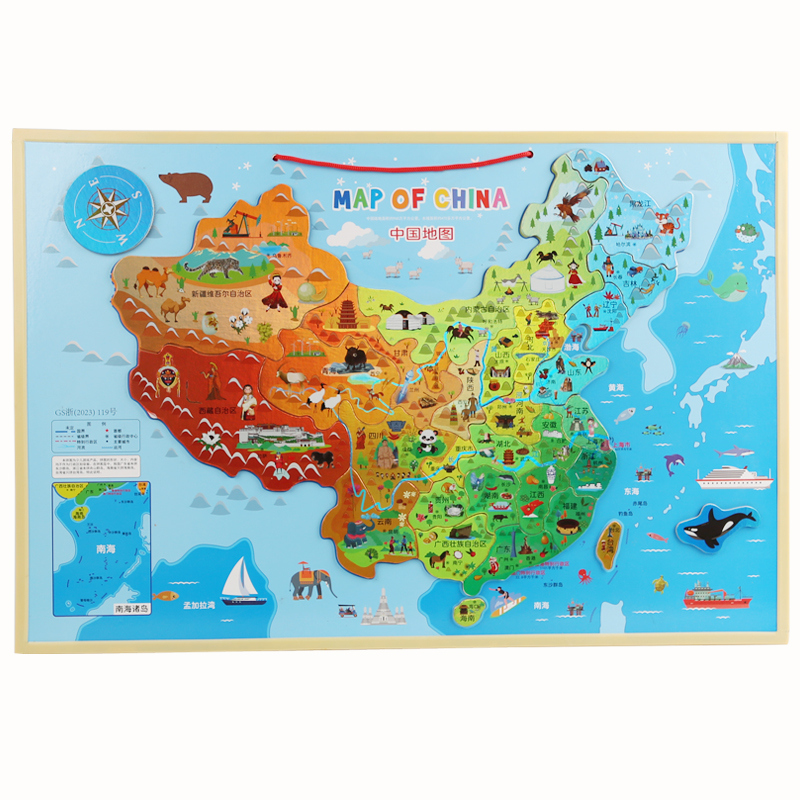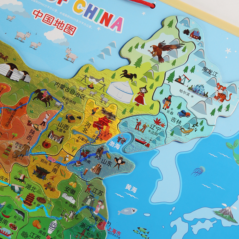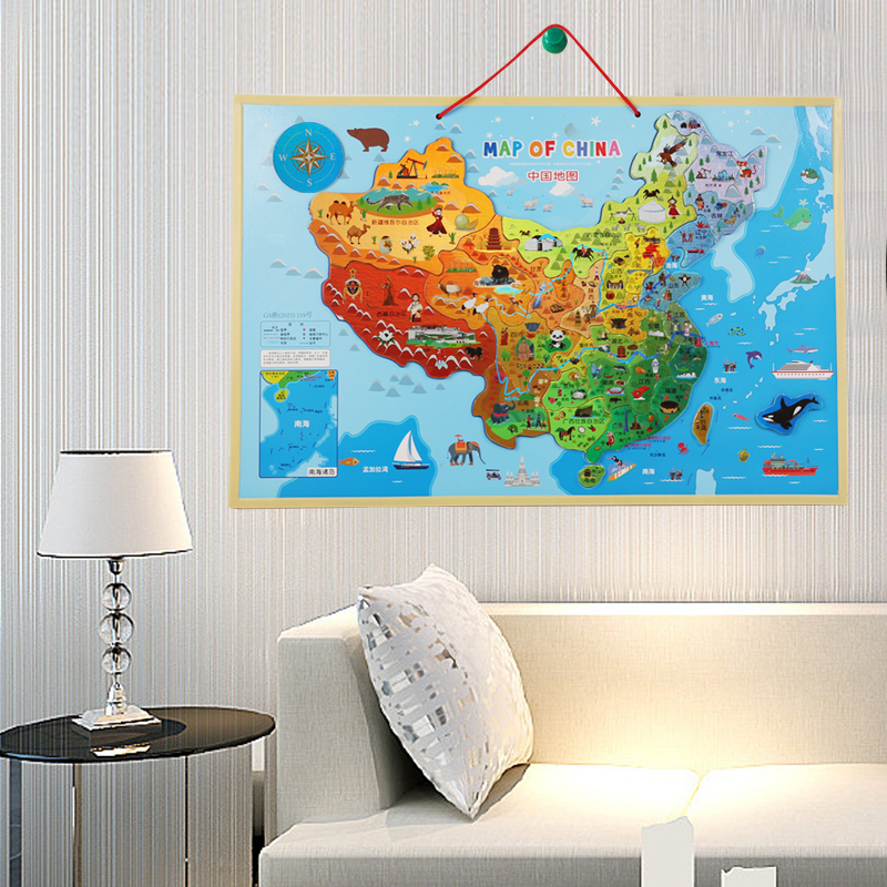 儿童磁性中国地图拼图3 6岁拼板男孩女孩玩具早教超大号可挂可立