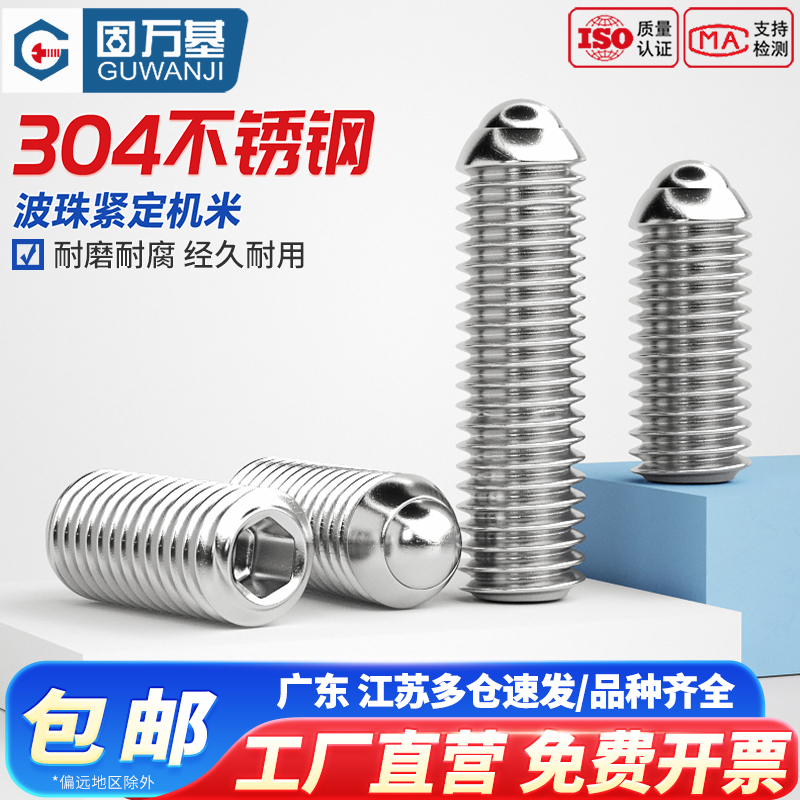 304不锈钢波珠螺丝 波子波仔定位螺钉钢珠紧定弹簧塞柱机米螺丝钉