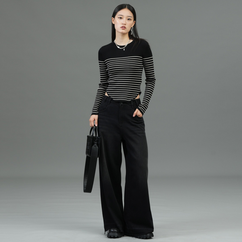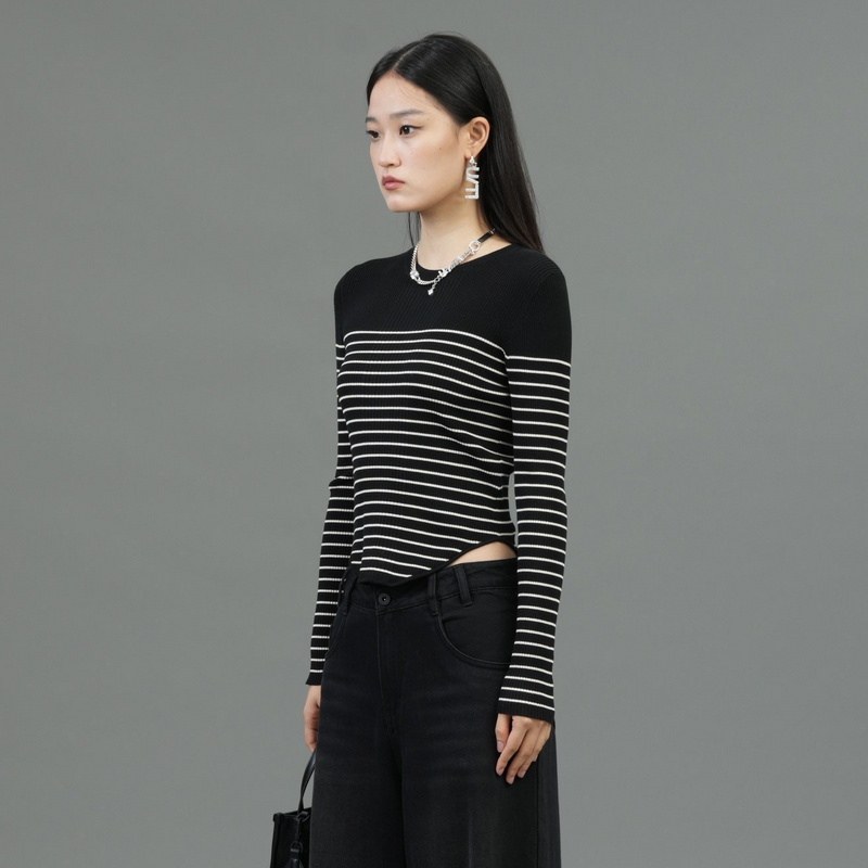 修身 针织衫 2025新款 妖精 薄款 绵羊毛 早秋穿搭打底衫 上衣 口袋