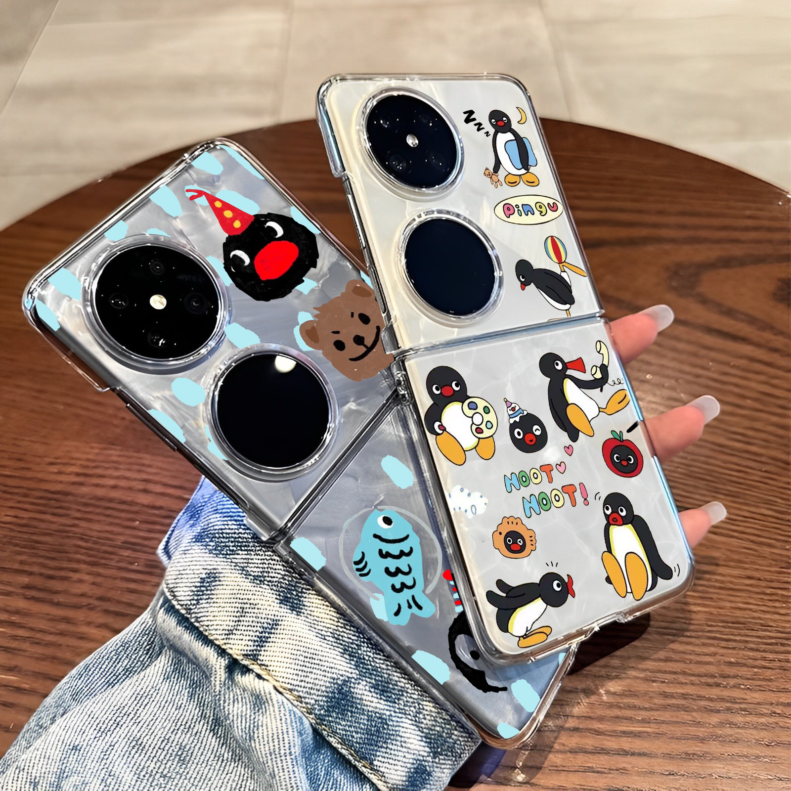 pingu企鹅适用华为pocket2手机壳purax折叠屏p50pocket透明s卡通nova 男女套 Flip趣味超火HW周边亚克力s新款
