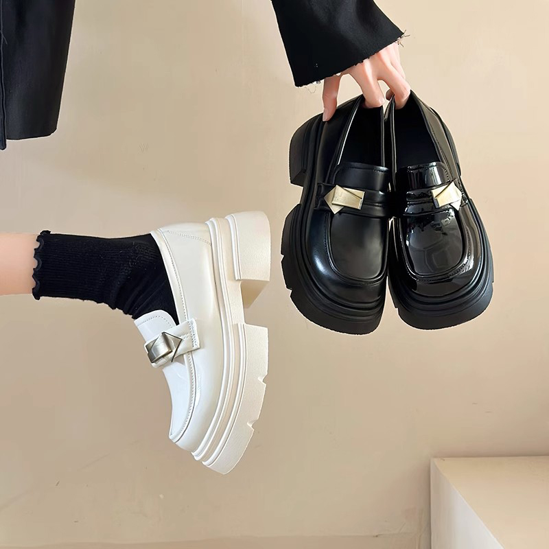 百搭一脚蹬玛丽珍乐福鞋 新款 中跟 女2025春季 黑色厚底英伦风小皮鞋