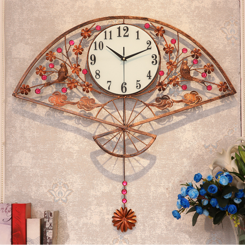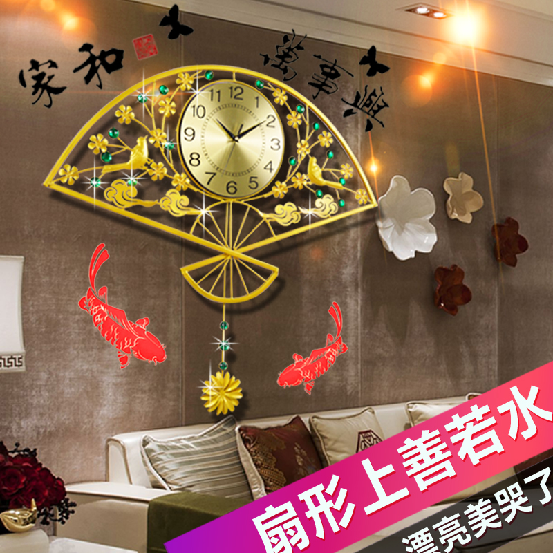艺术时钟挂墙大气石英钟 个性 扇形新中式 钟表挂钟客厅创意家用时尚