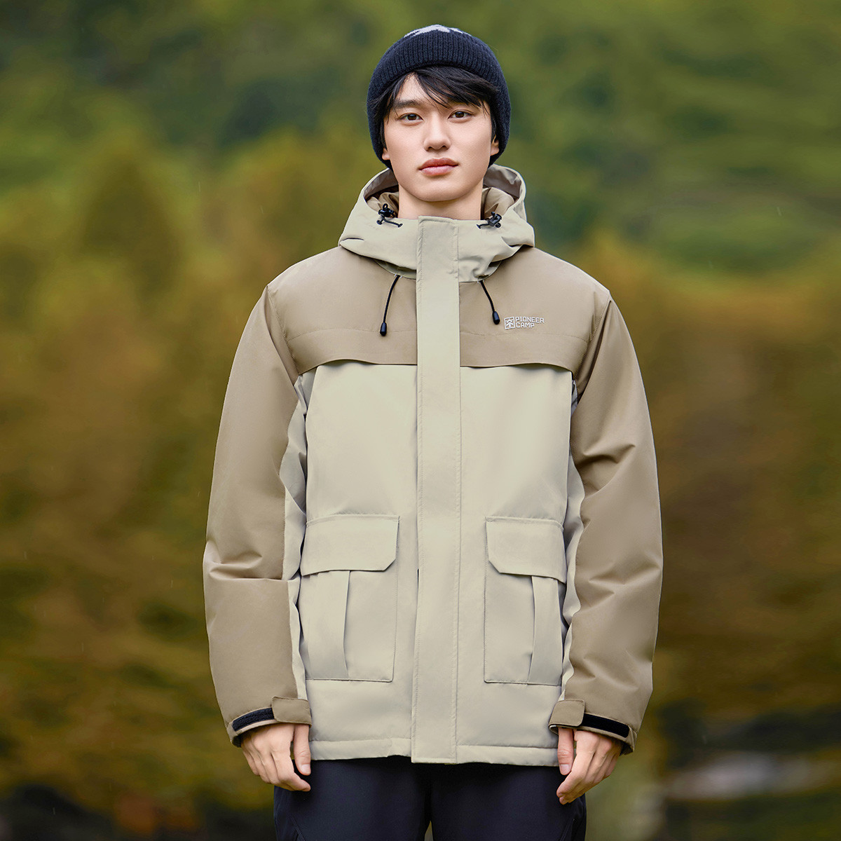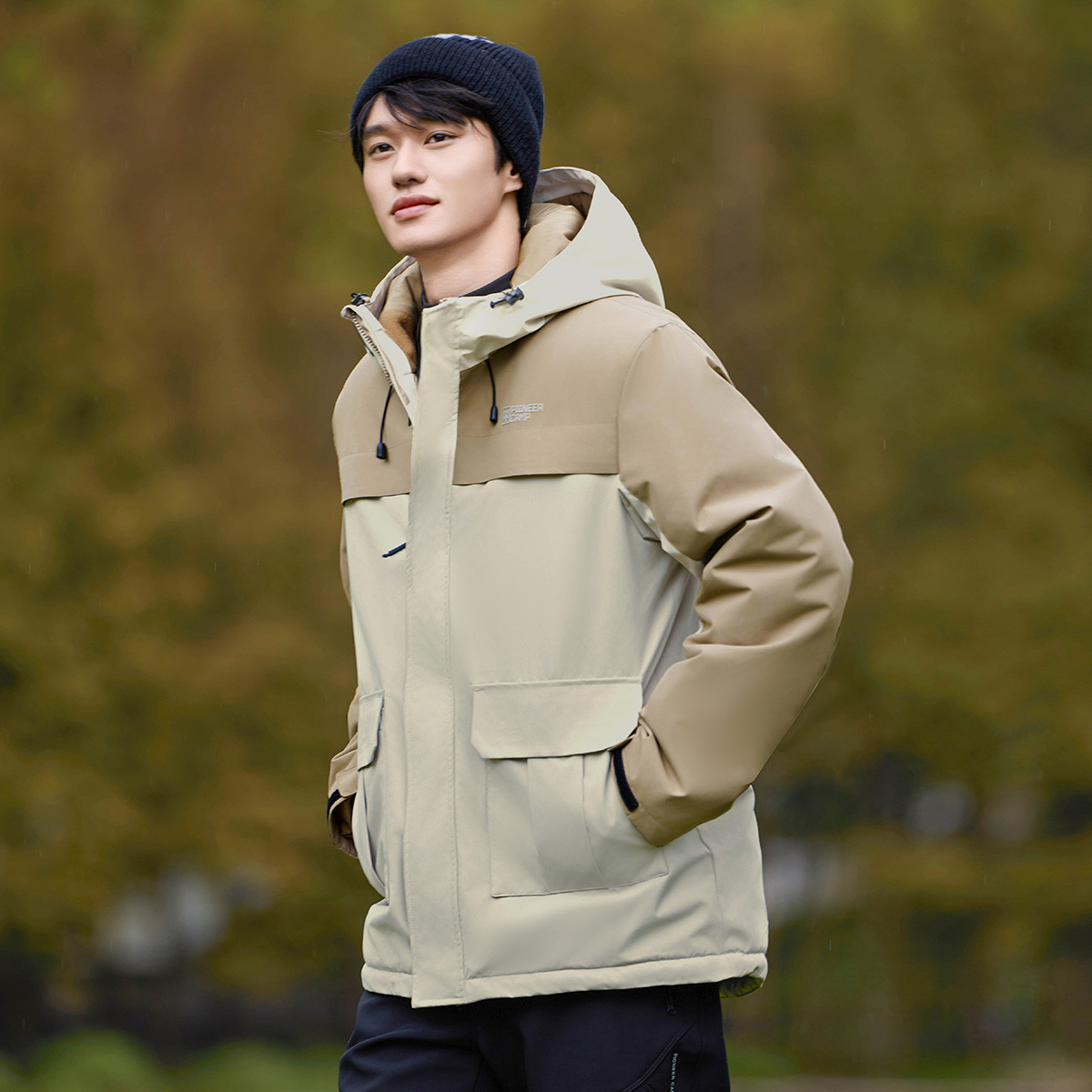 佐丹奴棉衣外套男秋冬新款 防风夹克撞色大口袋连帽棉服男01075678
