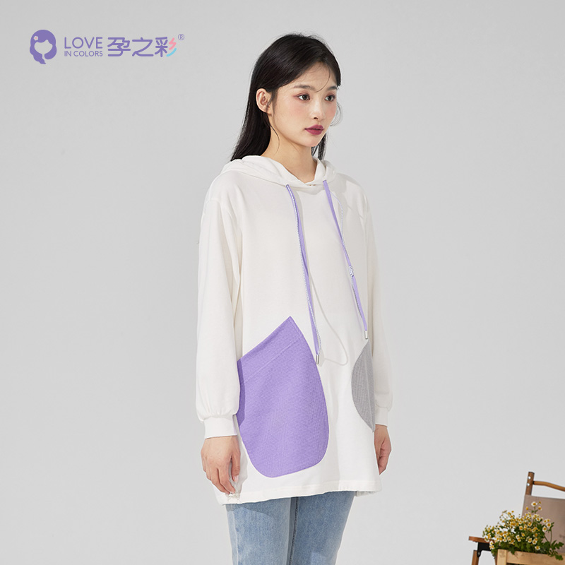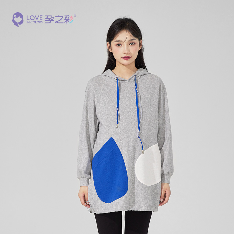 遮屁股上衣女宽松大码 拼接中长款 连帽衣 卫衣时尚 孕之彩孕妇春秋款