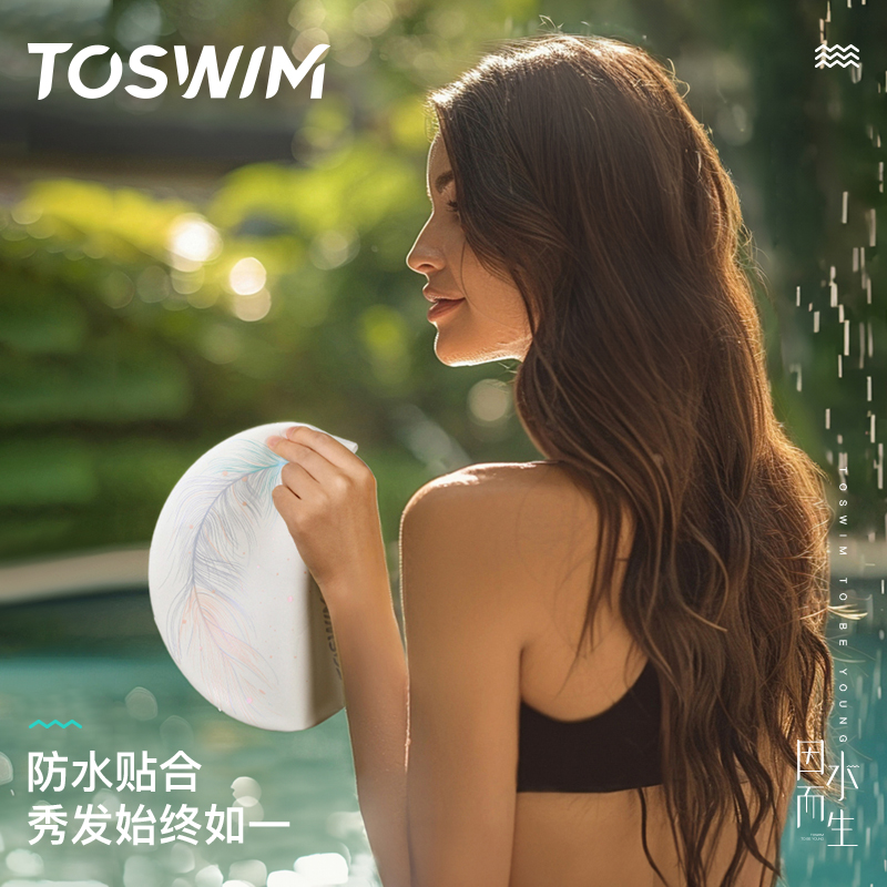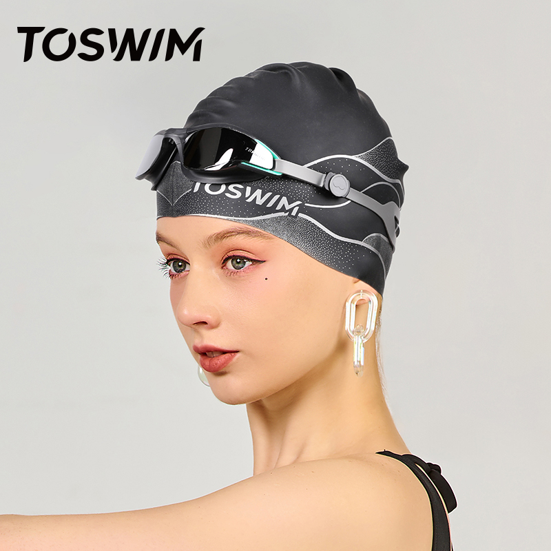 TOSWIM游泳帽女防水不勒头长发加大头围时尚 印花色硅胶女士泳帽