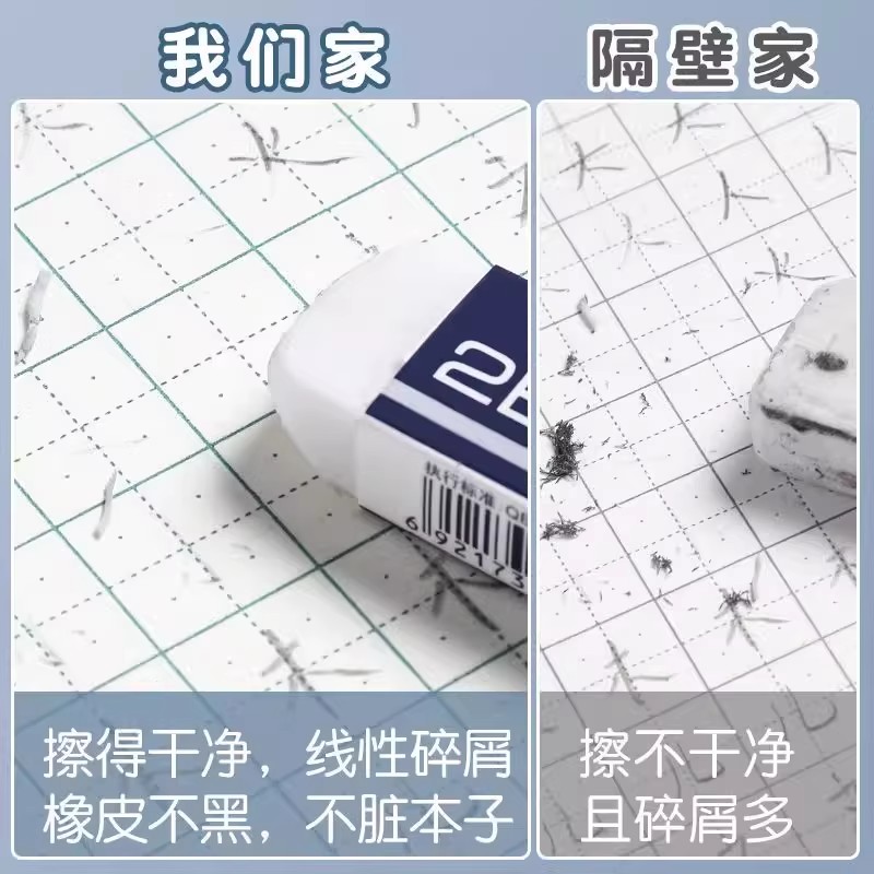 得力2B橡皮擦无屑超干净小学生专用不留痕幼儿园考试美术素描橡皮檫儿童安全无毒聚屑成条铅笔可擦橡皮文具