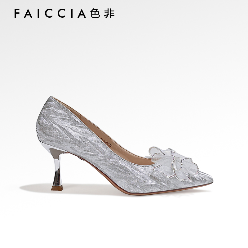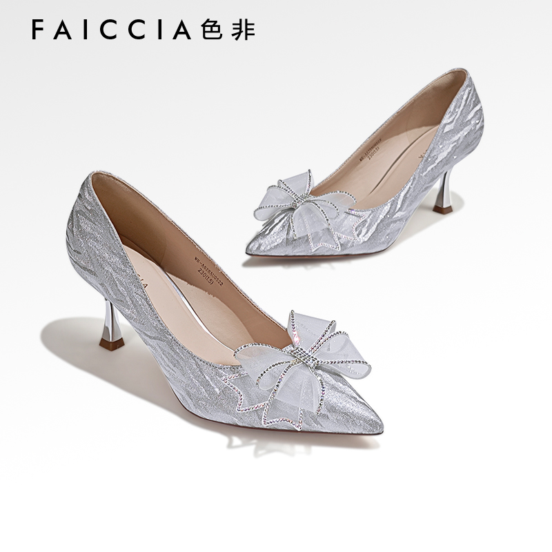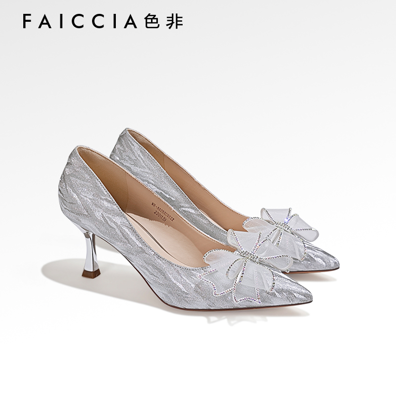 蝴蝶结宴会尖头高跟鞋 晚晚2024年春新款 色非优雅婚鞋 女 怦然心动