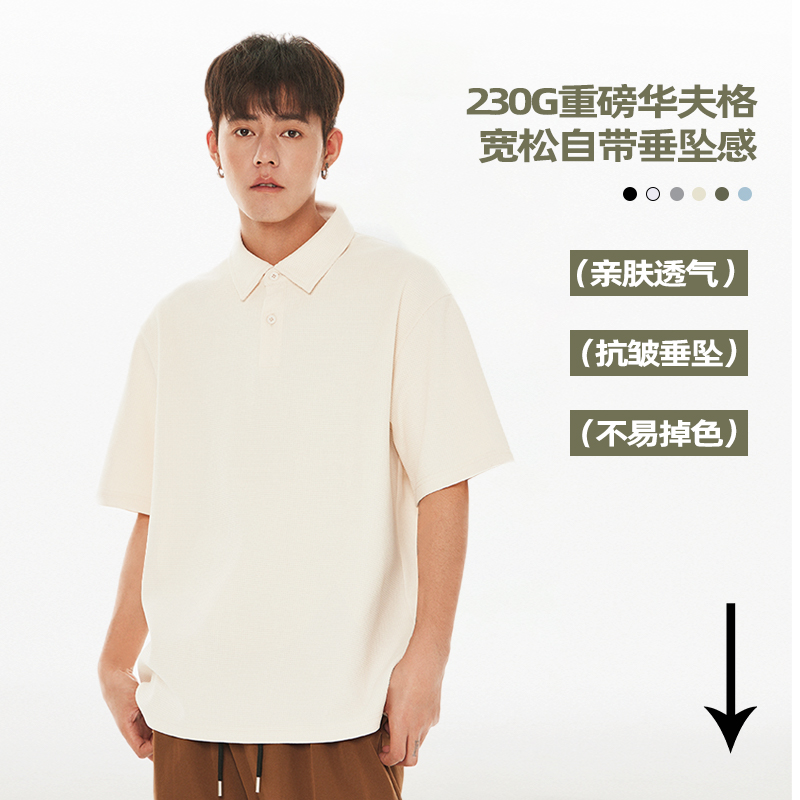 新款 回力黑色中国风男士 夏季 POLO衫 重磅华夫格情侣上衣S 潮牌短袖