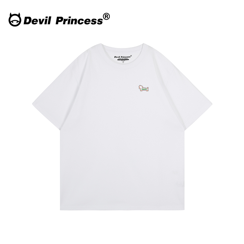 上衣夏 超火腊肠狗印花半袖 2025新款 韩系慵懒风白色正肩t恤女短袖