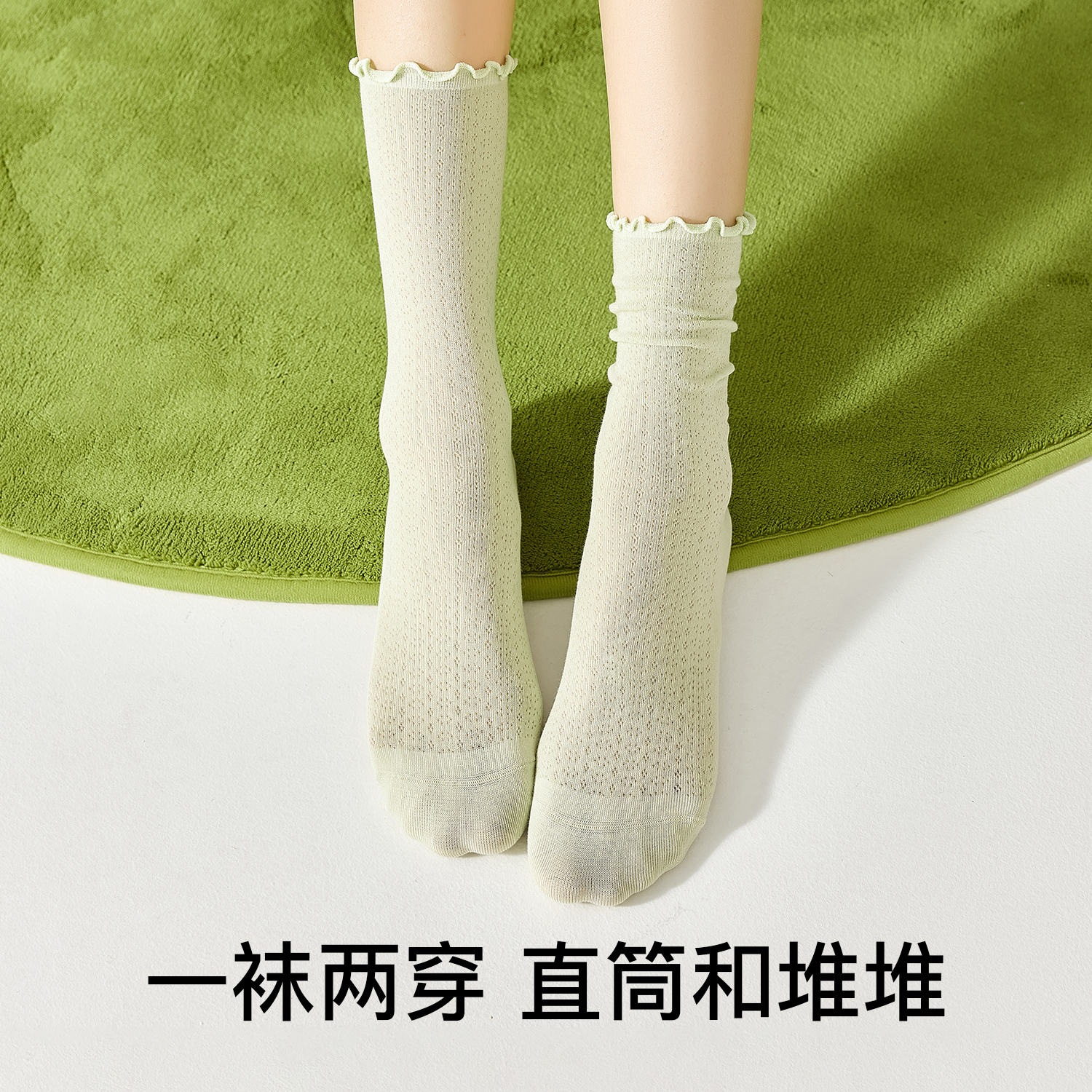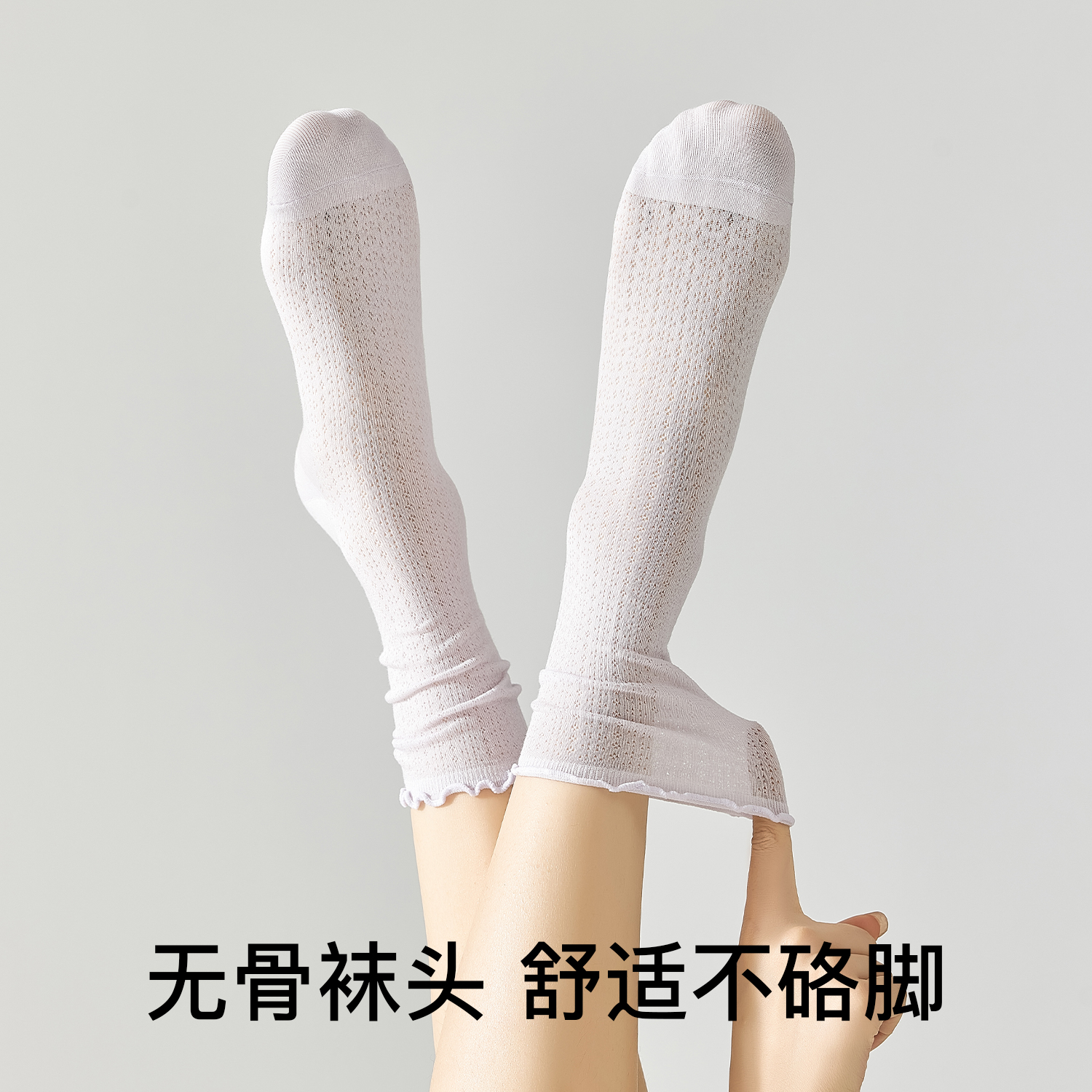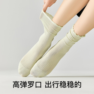 白色无骨花边月子袜 纯棉中筒堆堆袜配小皮鞋 木耳边袜子女夏季 薄款