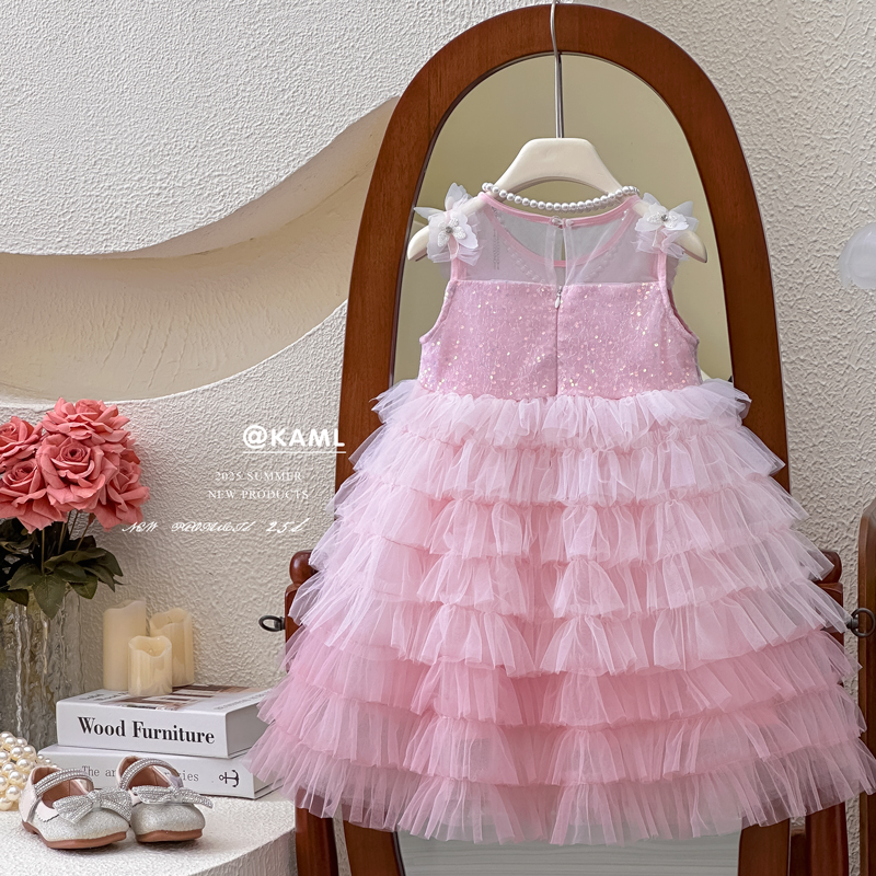 新款 2025秋季 法式 粉色开衫 碎花吊带连衣裙女 乔拉 无袖 薄荷花海