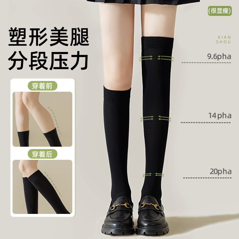 JKN压力小腿袜女春秋强压显瘦腿jk袜子黑色过膝高筒半中筒长筒袜