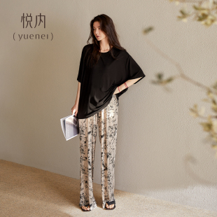 家居服圆领套头休闲可外穿出门 长裤 悦内睡衣女夏季 夏天莫代尔短袖