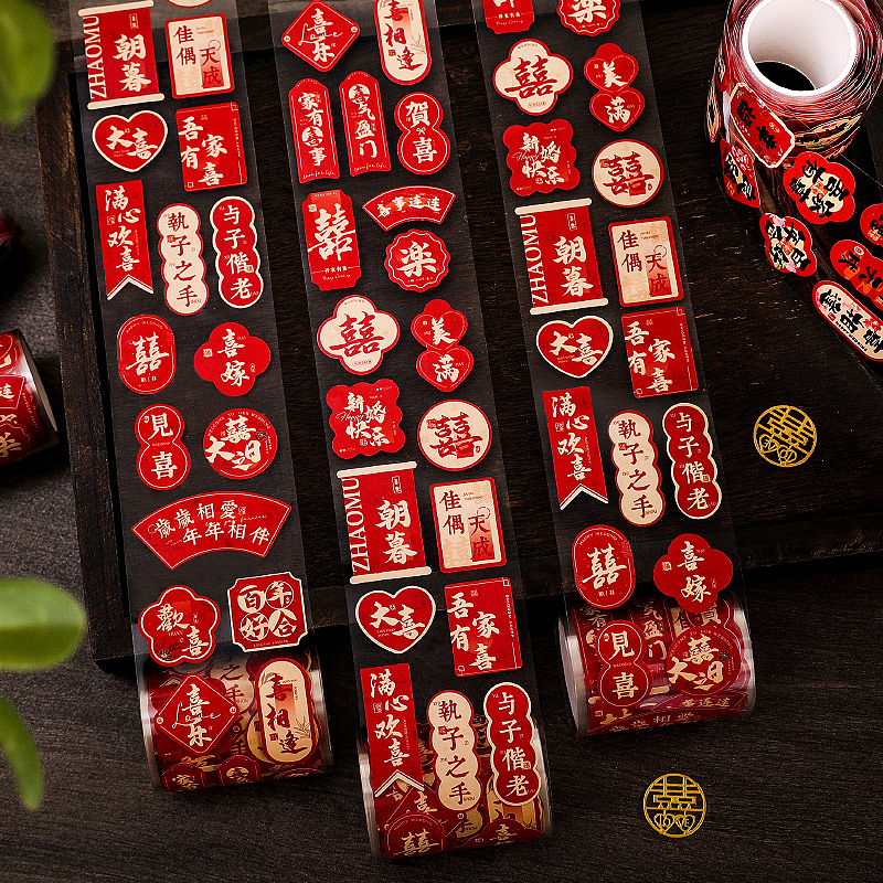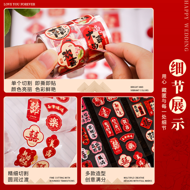 喜字贴结婚专用红包封口贴纸婚房布置套装 饰 台灯鸡蛋囍字贴纸装