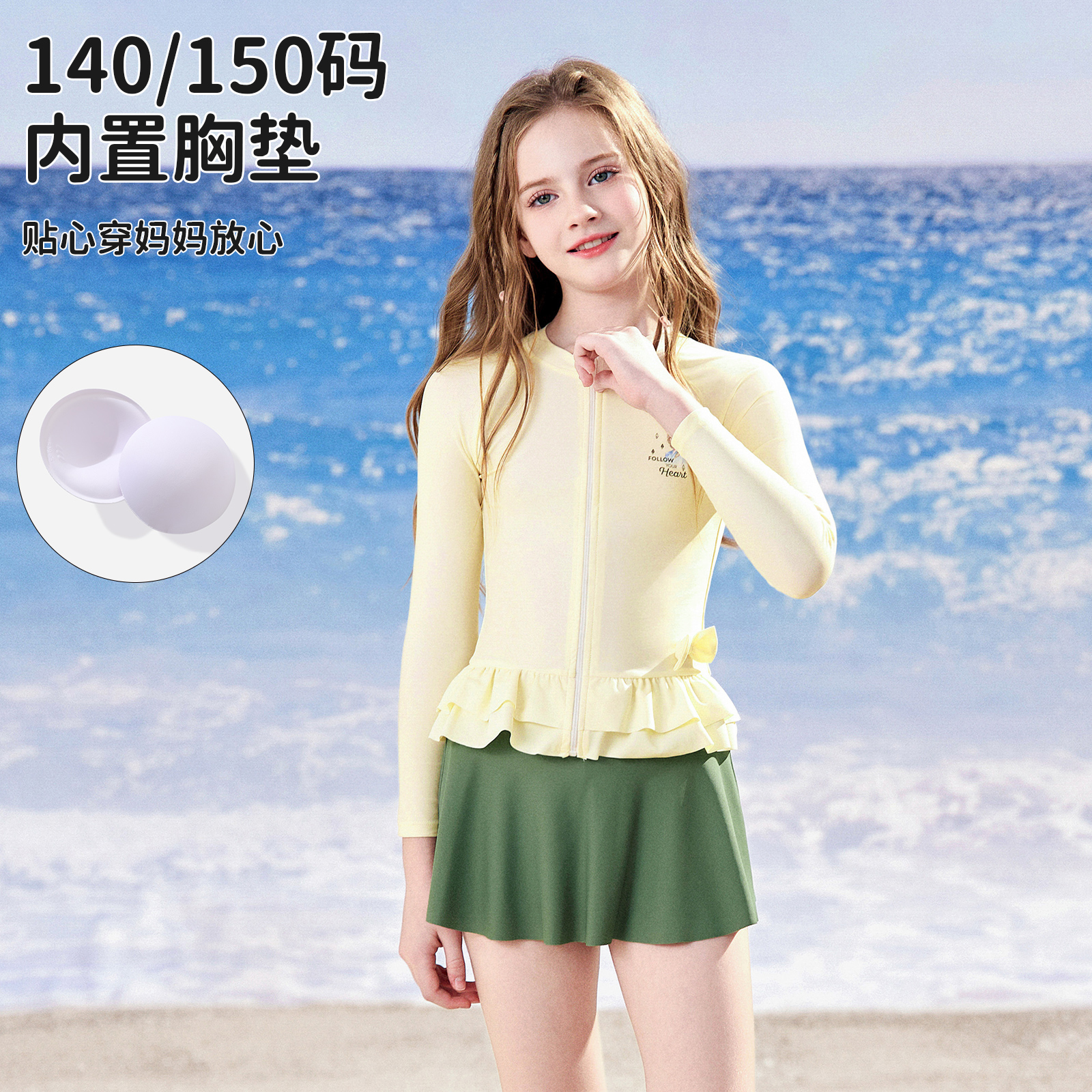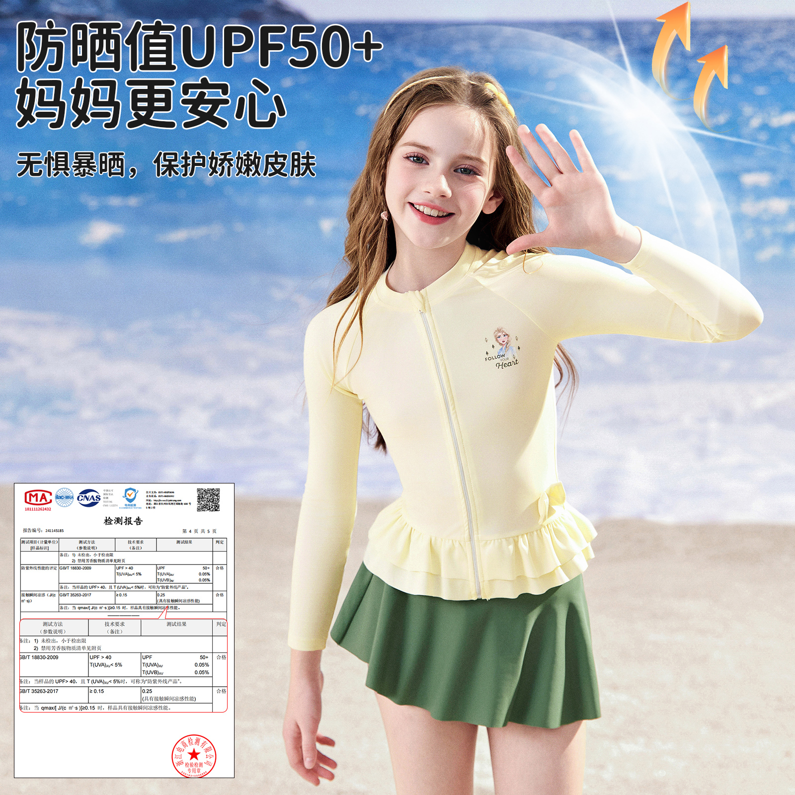 防晒游泳衣中大童泳装 迪士尼儿童泳衣女童2025新款 夏女孩分体长袖