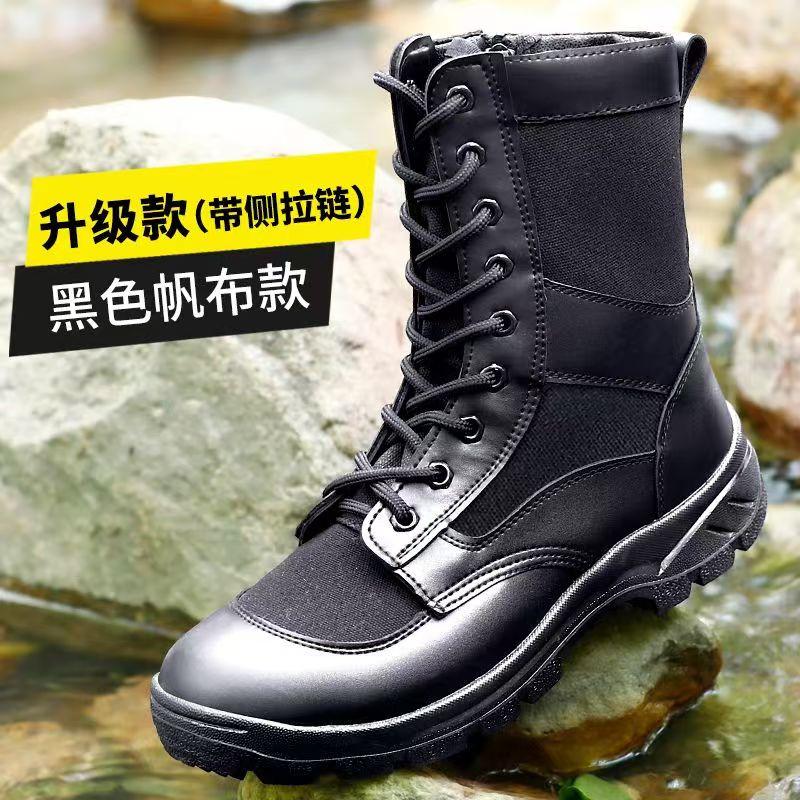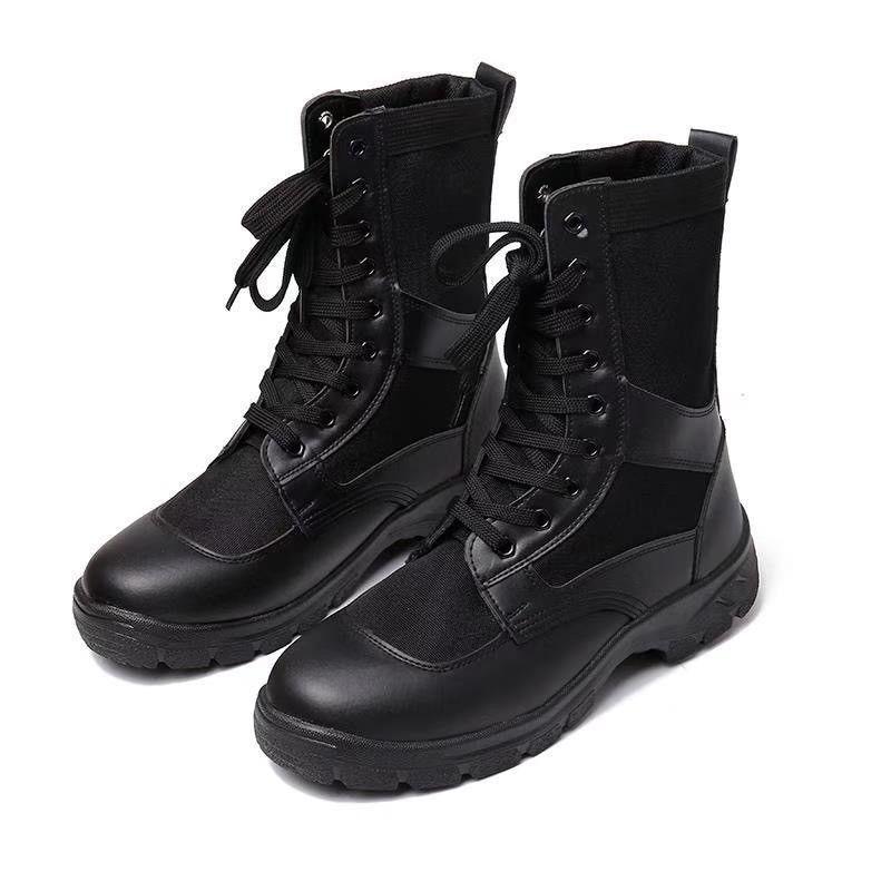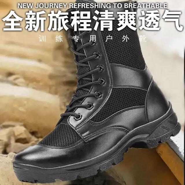 户外安保靴耐磨 网孔高帮拉链系带战术靴徒步鞋 新式 超轻靴透气夏季
