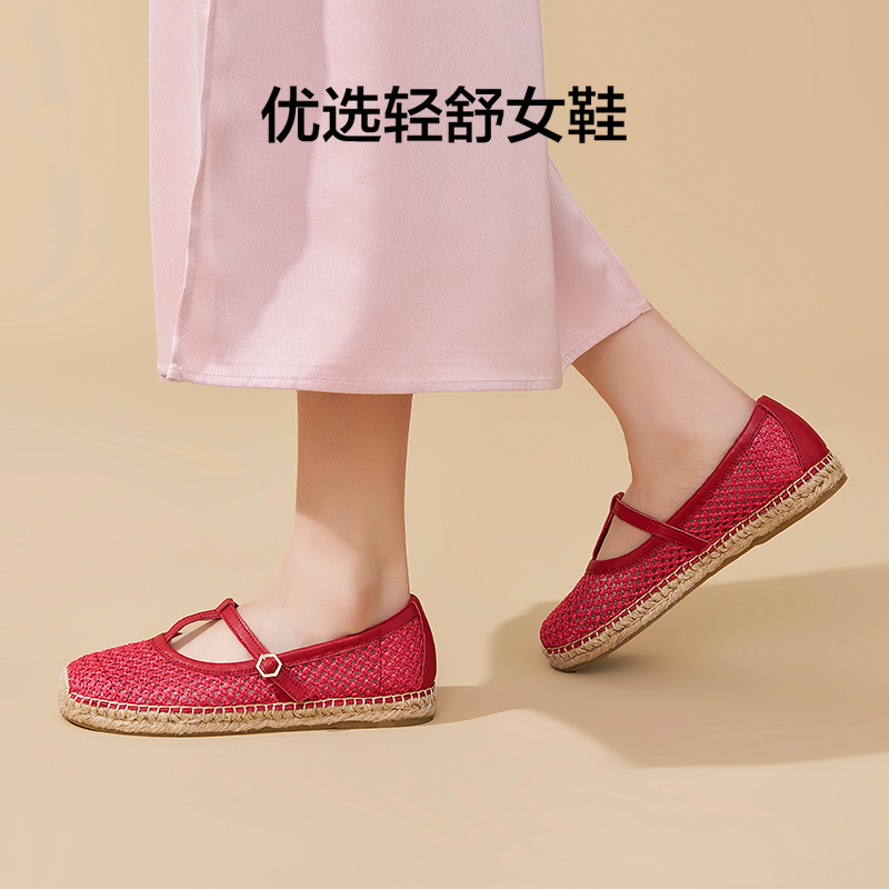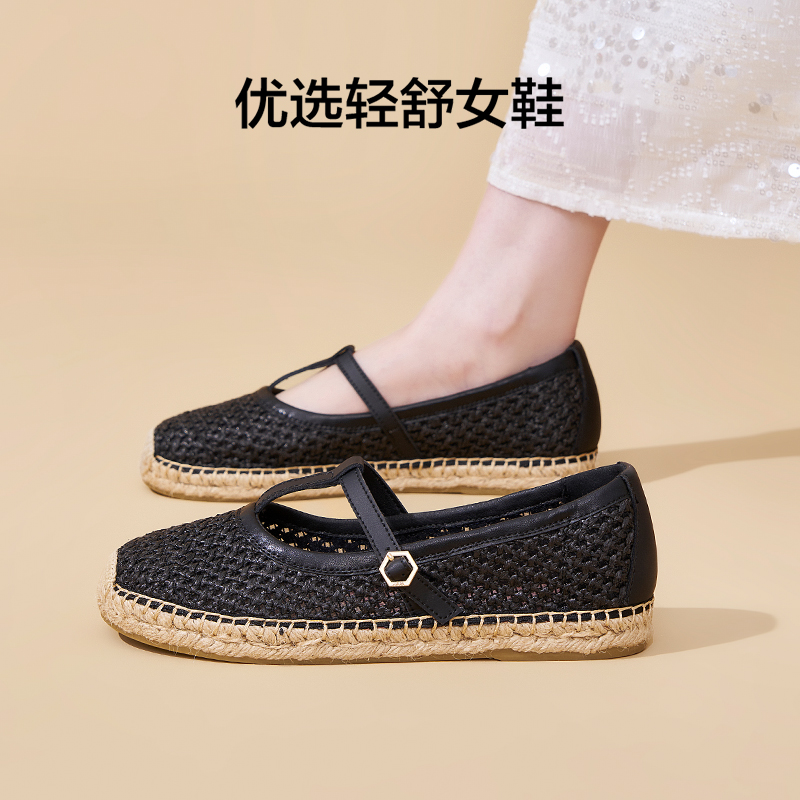 平底单鞋 快乐玛丽渔夫鞋 一字带镂空网面透气凉鞋 新款 女 女2025夏季