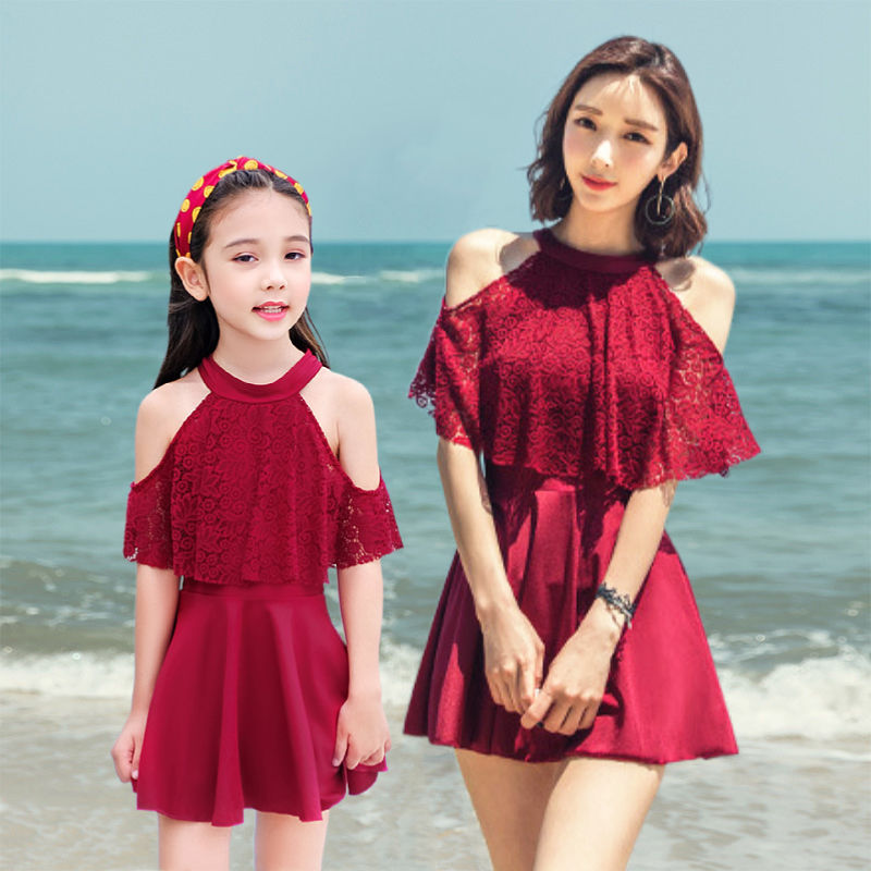 时尚 母女遮肉泳装 可爱女童海边温泉游泳衣 连体裙式 亲子泳衣女新款