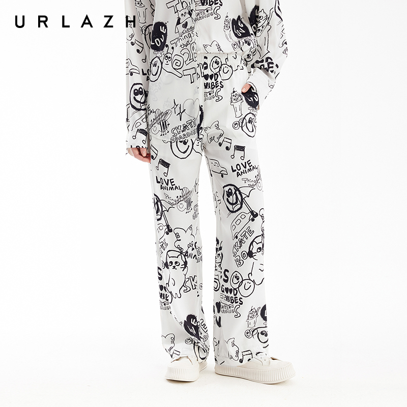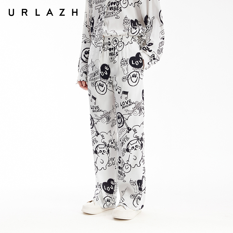 女 简约复古风涂鸦印花轻薄宽松直筒休闲长裤 URLAZH有兰夏季 新款