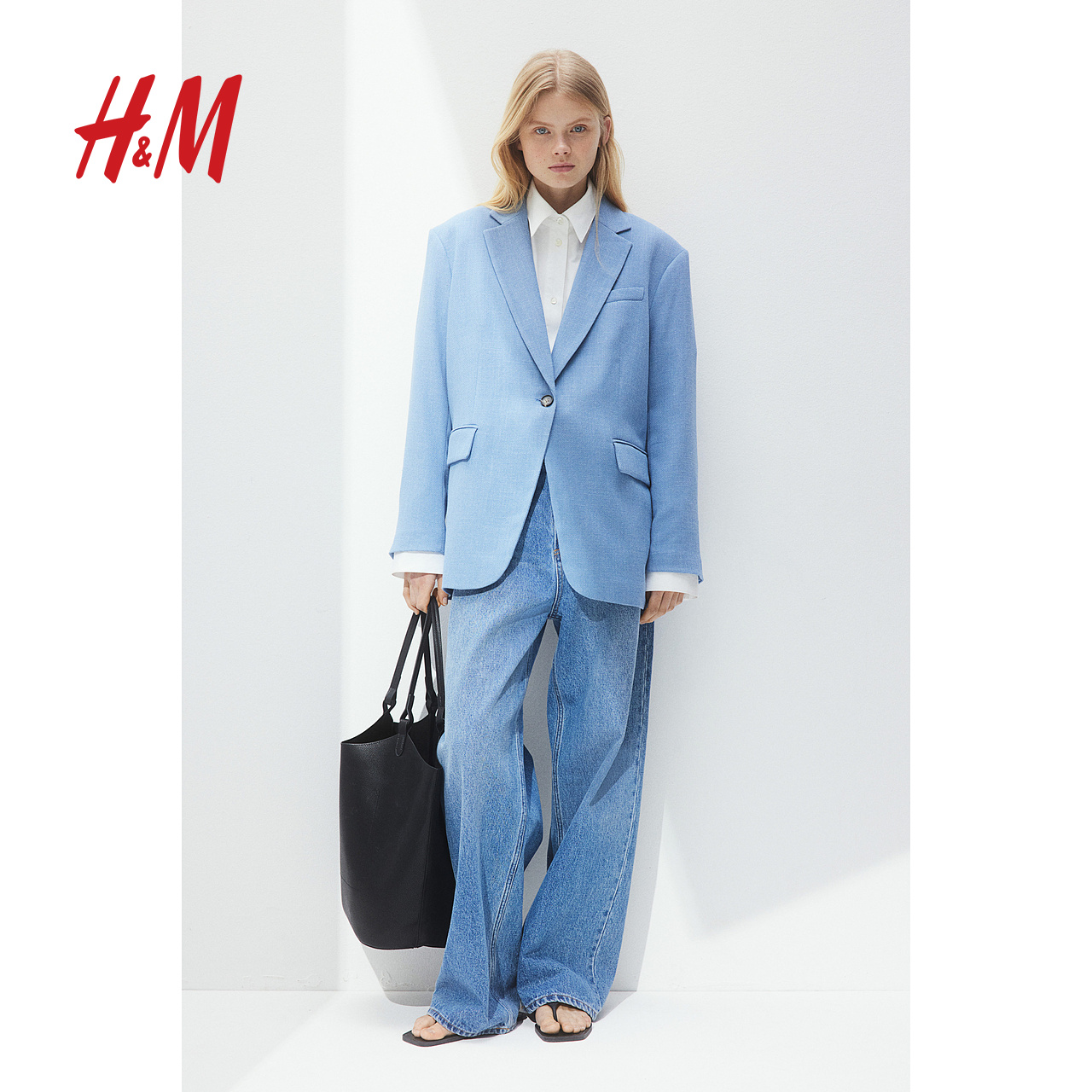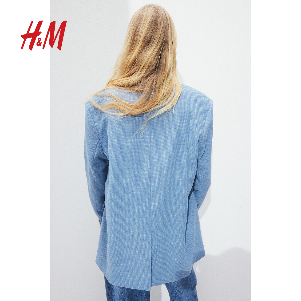 太平鸟黑金西装 外套女新挺阔外套 戗脖领廓形双排扣通勤黑色西装